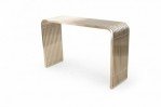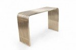 PAIR of Contemporary silver metal console tables comprised of bent metal slats (PRICED AS PAIR).