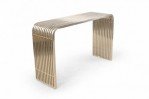 PAIR of Contemporary silver metal console tables comprised of bent metal slats (PRICED AS PAIR)