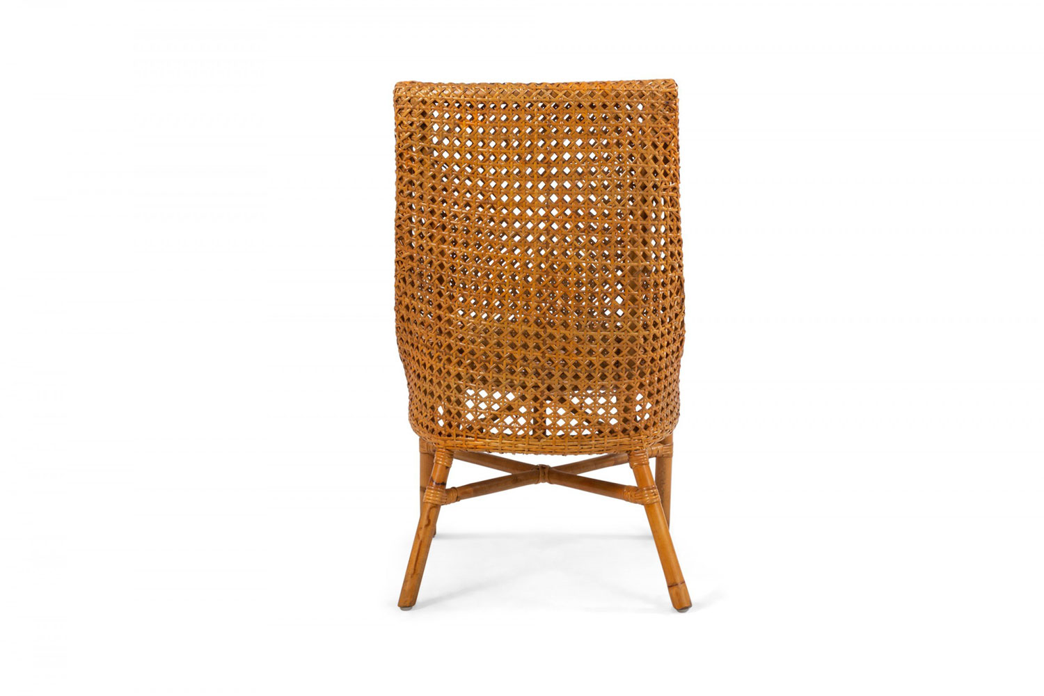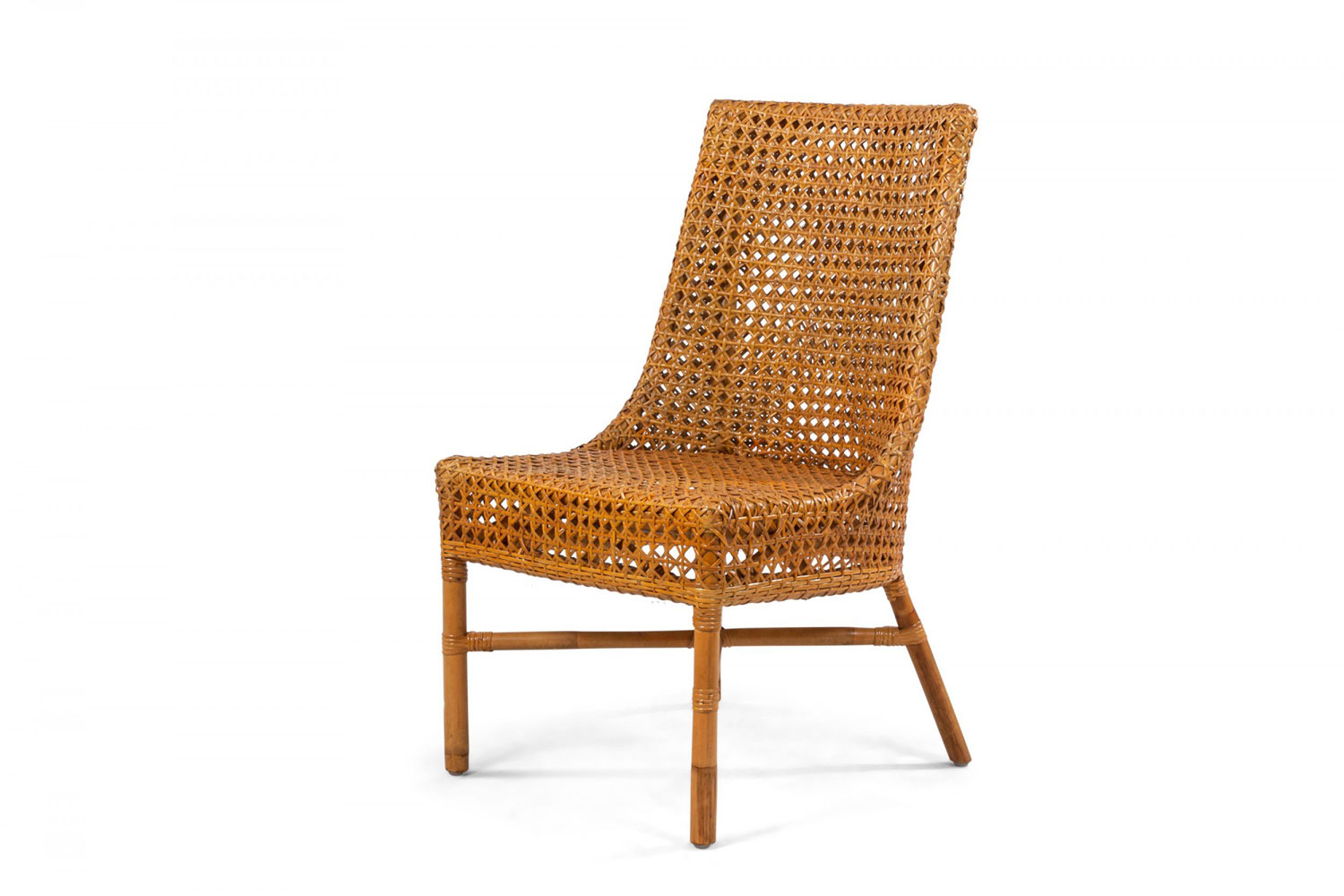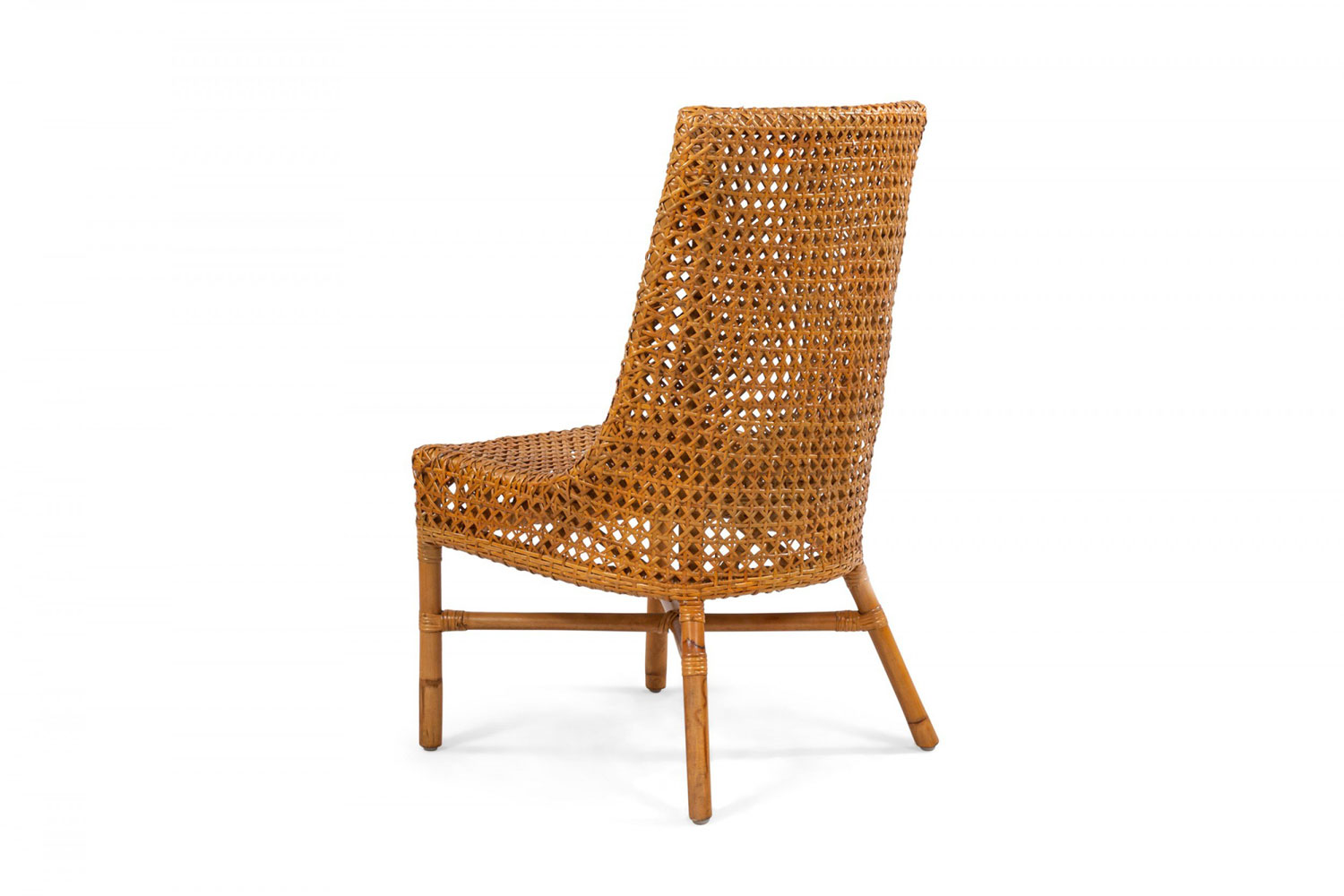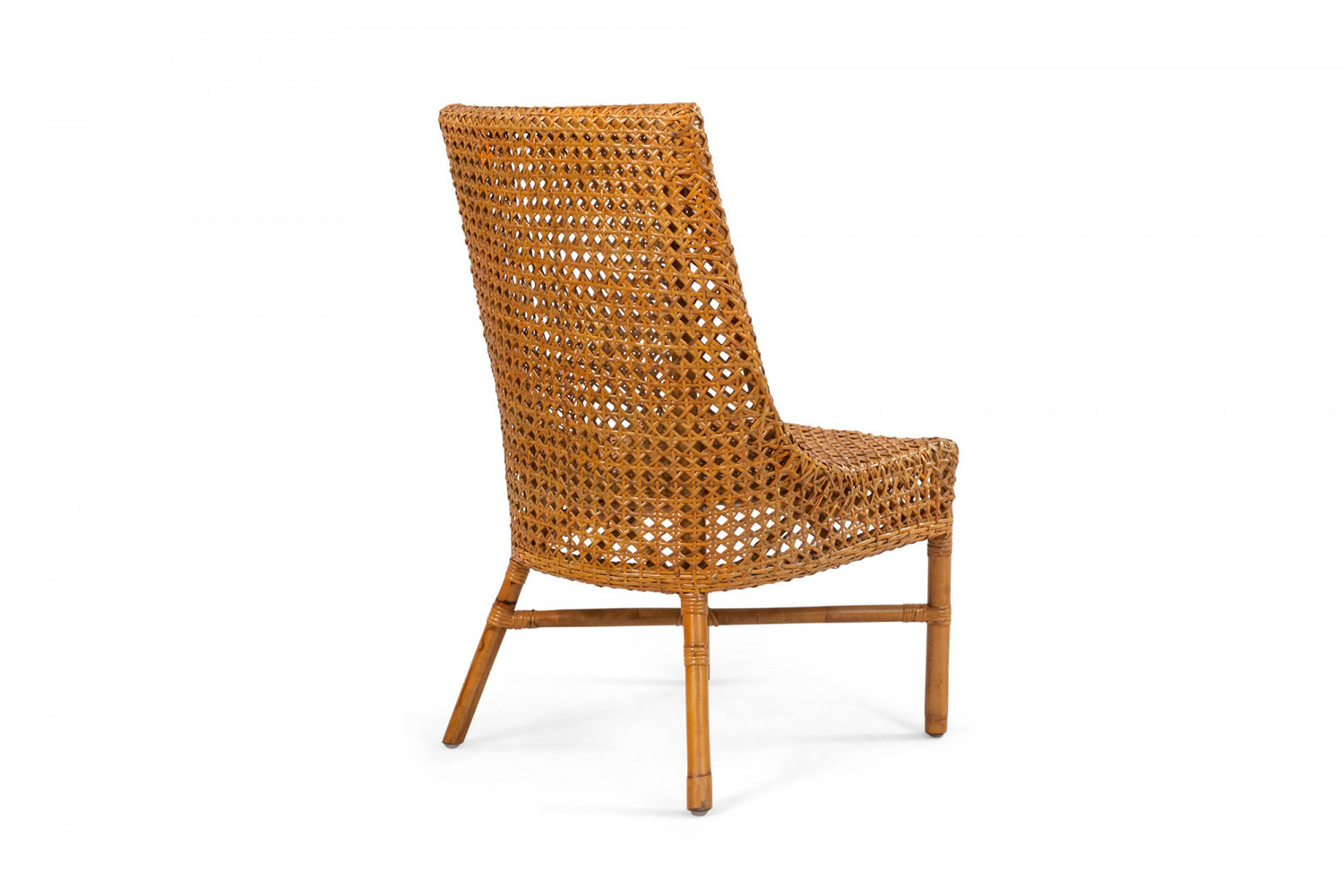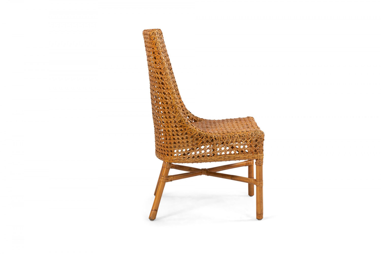 34 Contemporary curved back natural woven wicker side chairs supported on faux bamboo legs connected by a stretcher (PRICED EACH)..