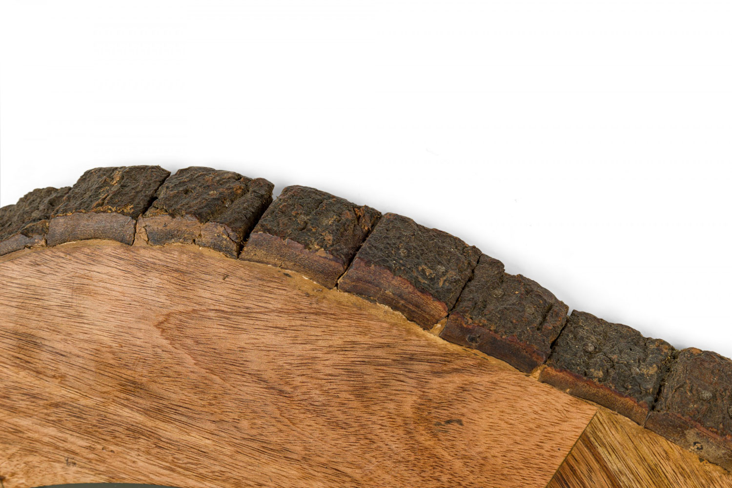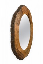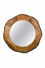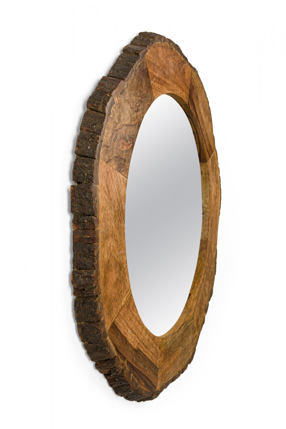 Contemporary Rustic organic circular wall mirror with a bark frame.
