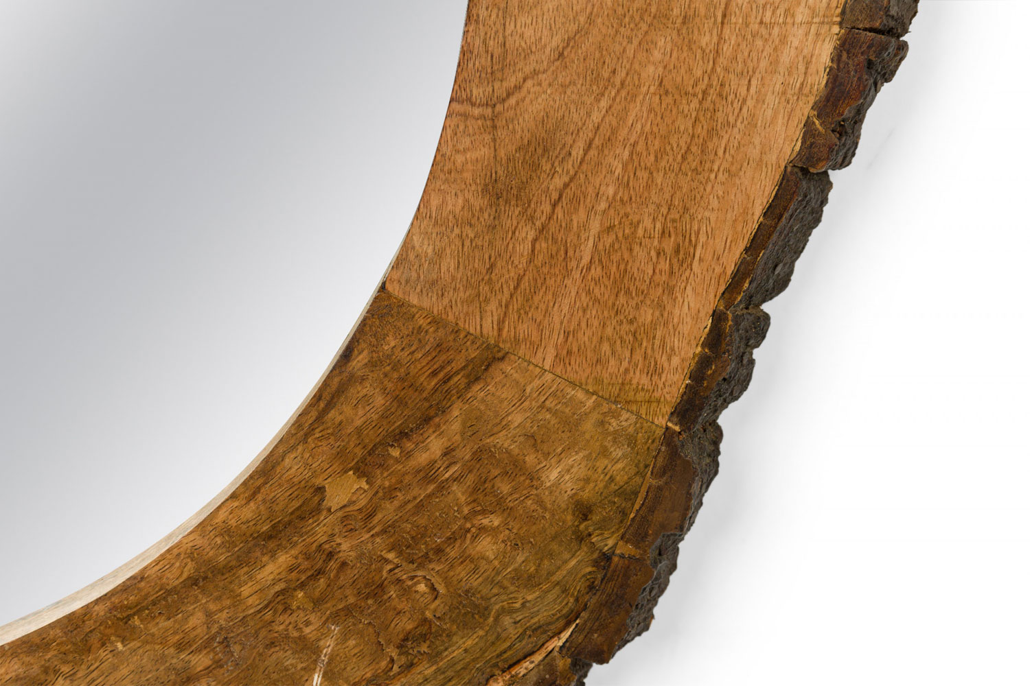 Contemporary Rustic organic circular wall mirror with a bark frame..