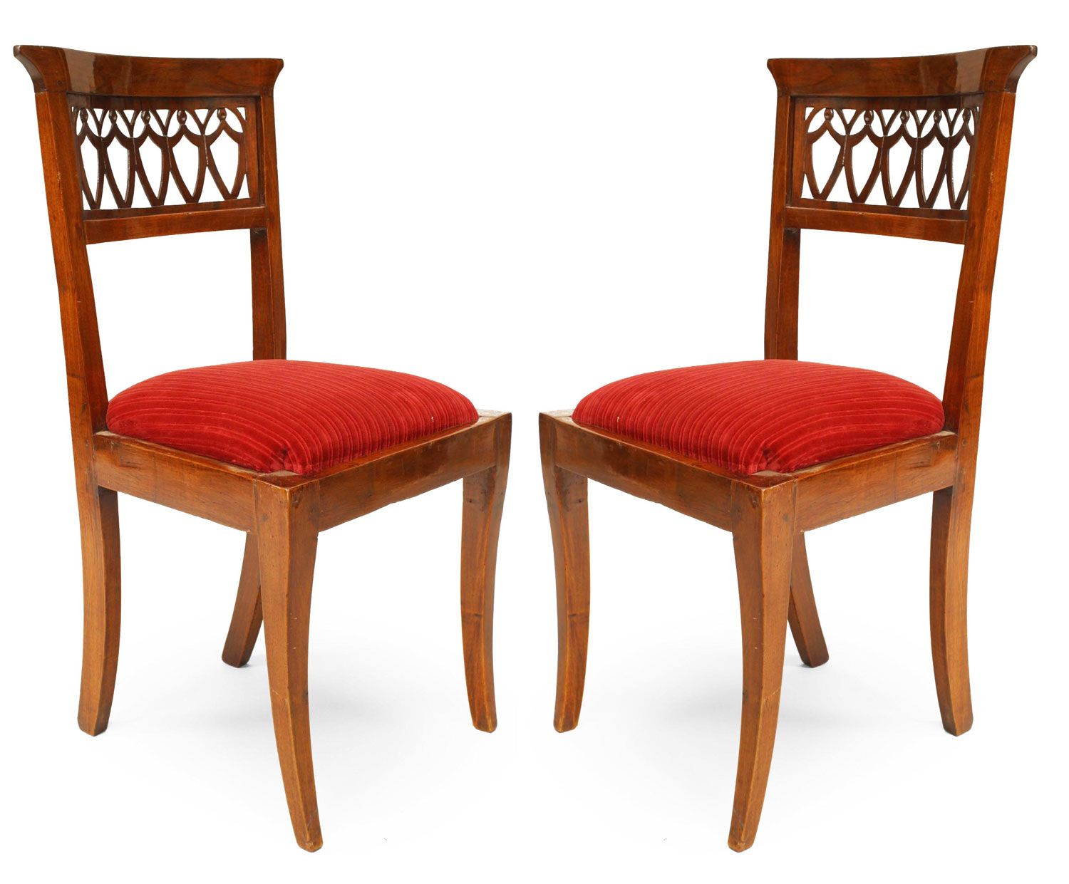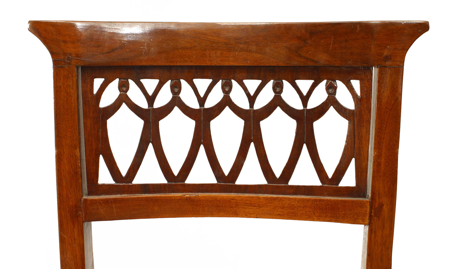 SET of 8 Continental Baltic (19th Cent) mahogany side chairs with a shaped back having an open filigree top panel and a slip seat..