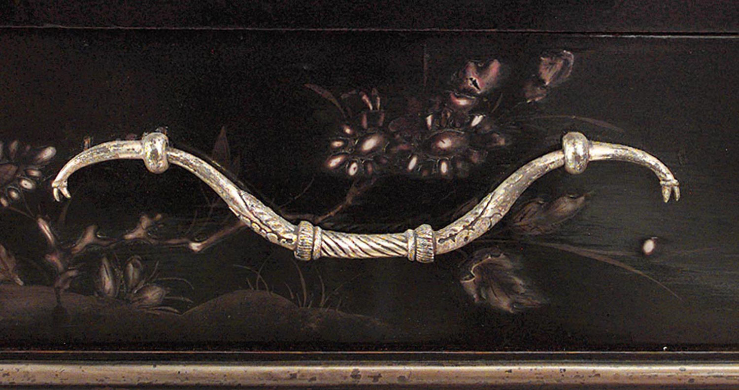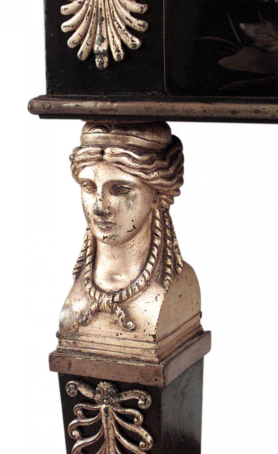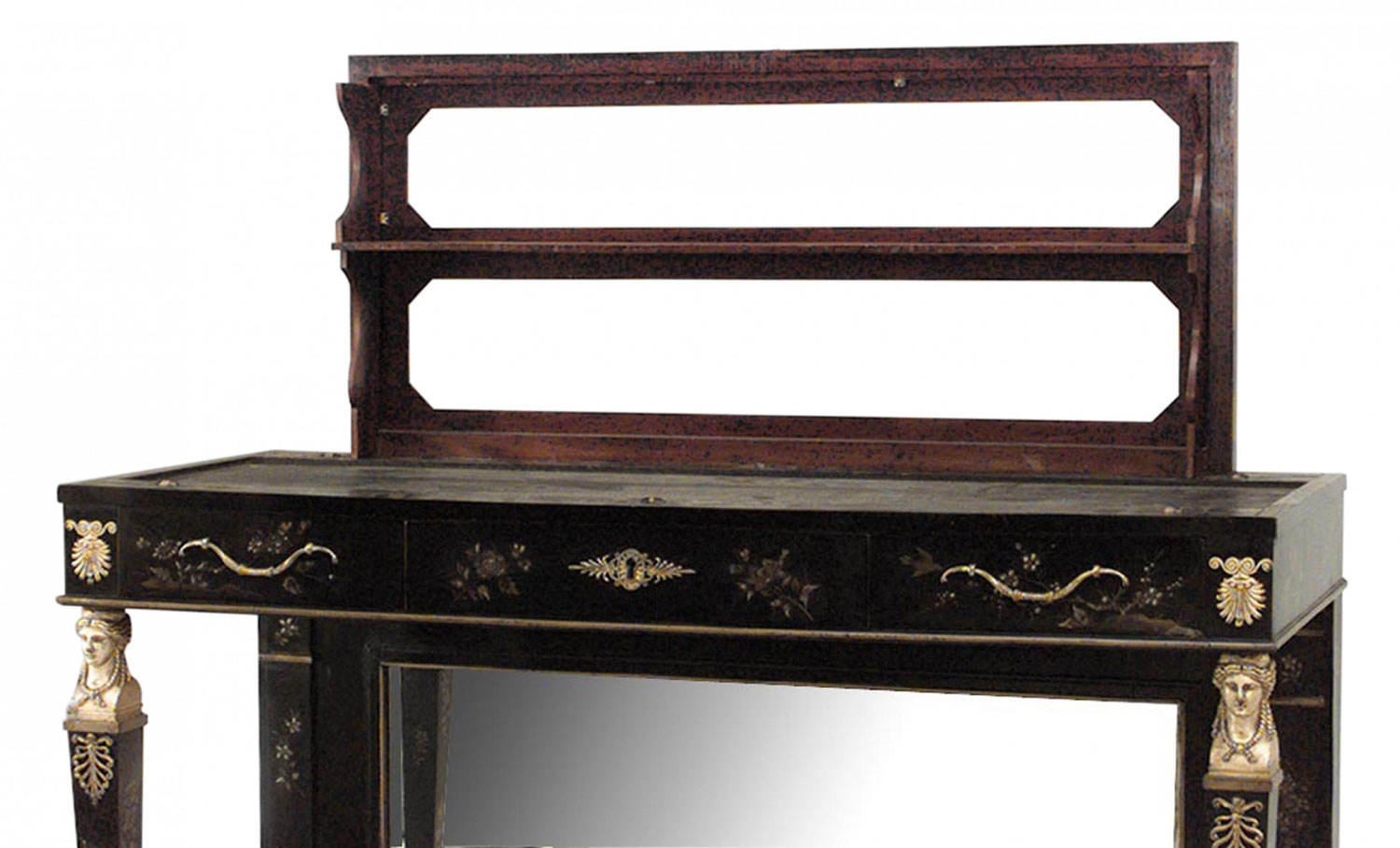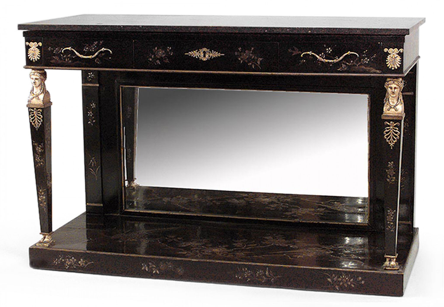 Continental Empire Black Lacquer Chinoiserie Console Table