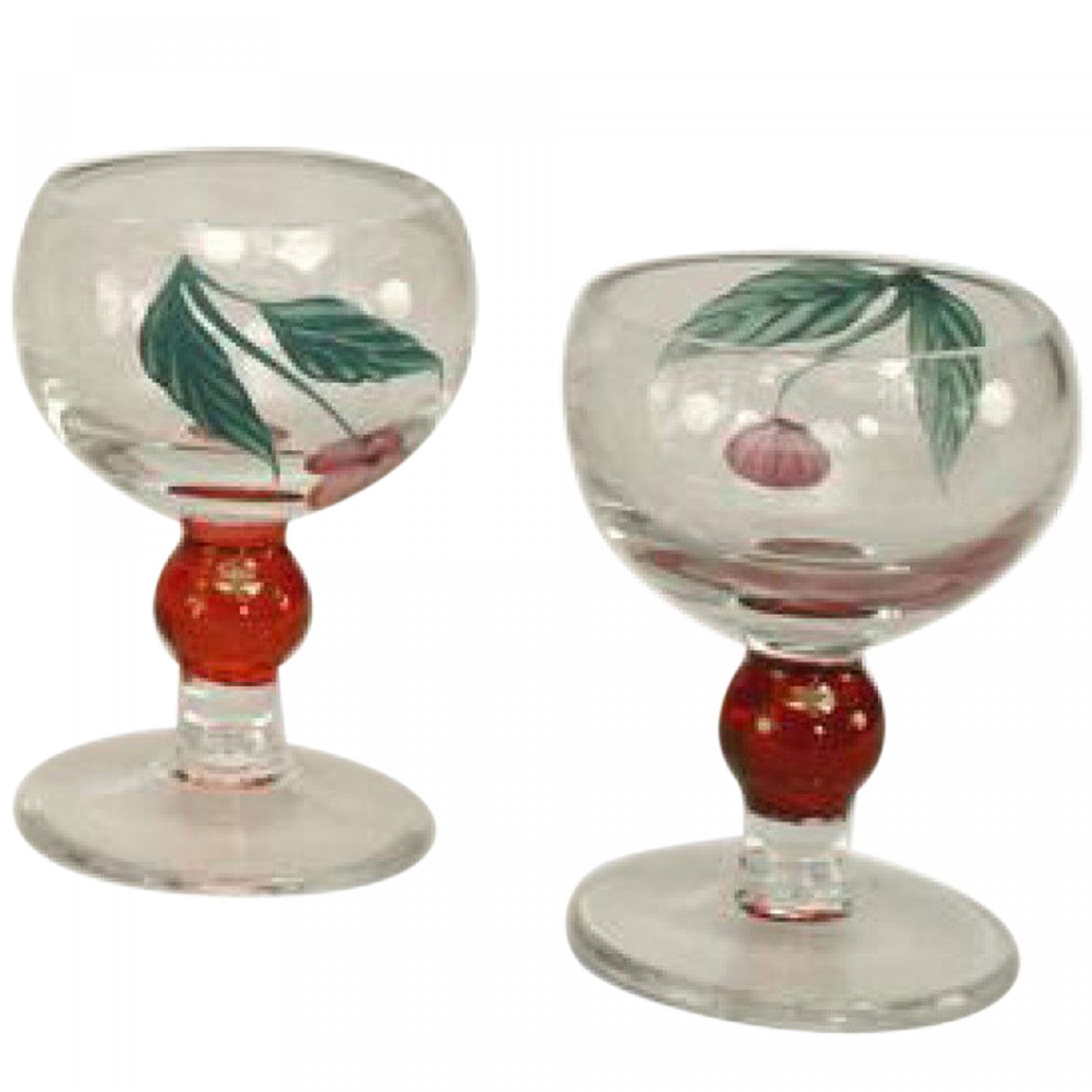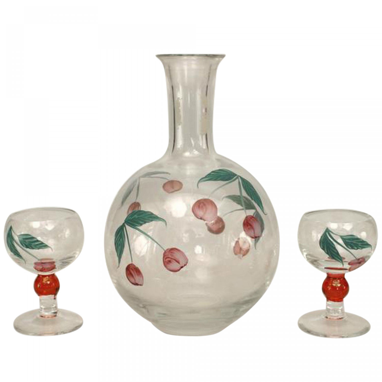 Continental German (1900) decanter decorated with painted leaves and cherries (decanter 7½" high).