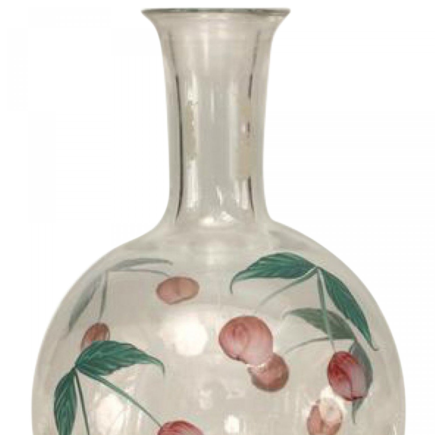 Continental German (1900) decanter decorated with painted leaves and cherries (decanter 7½" high)