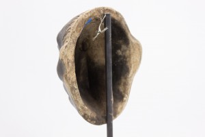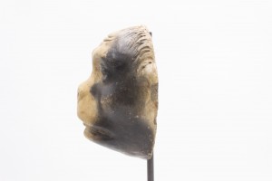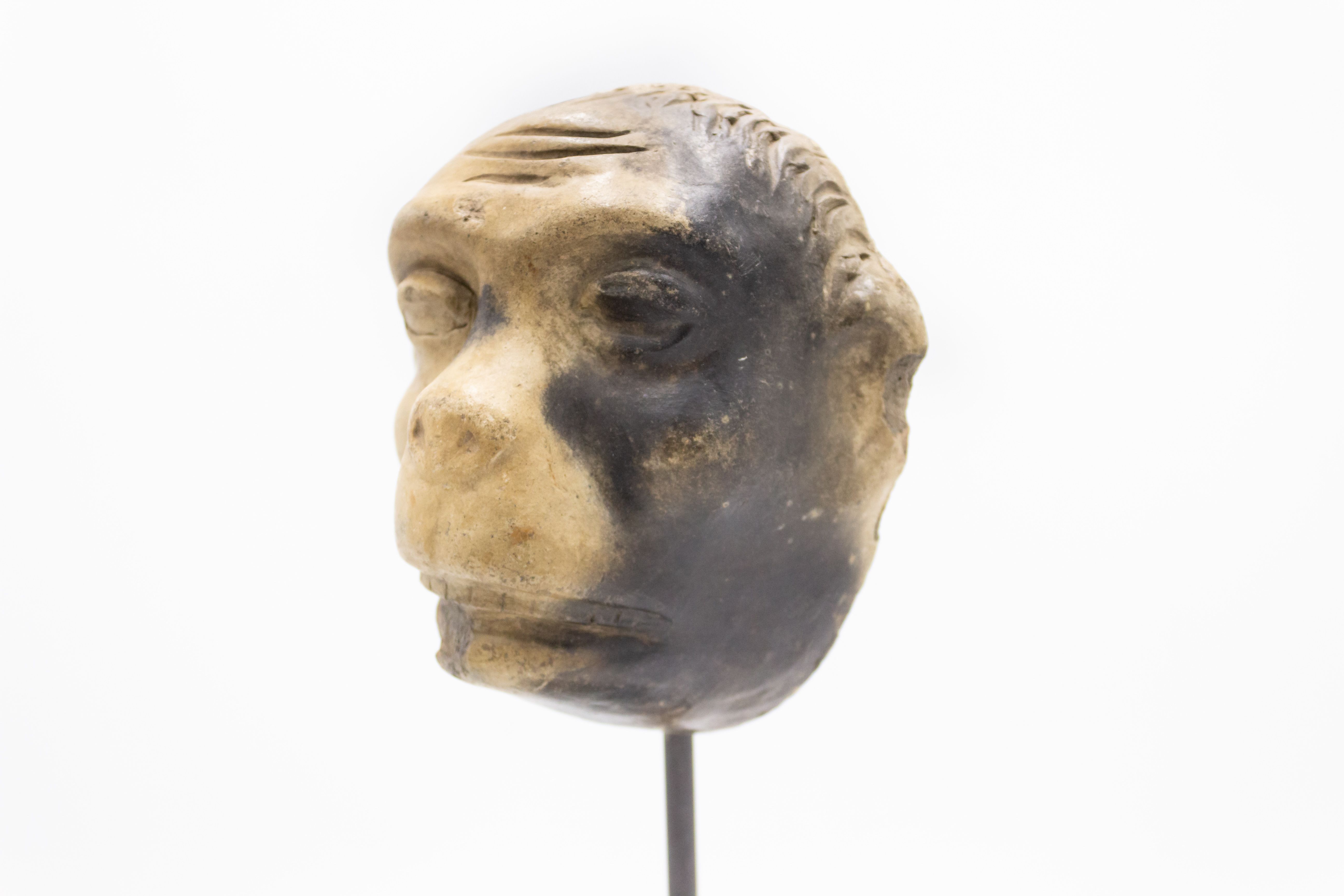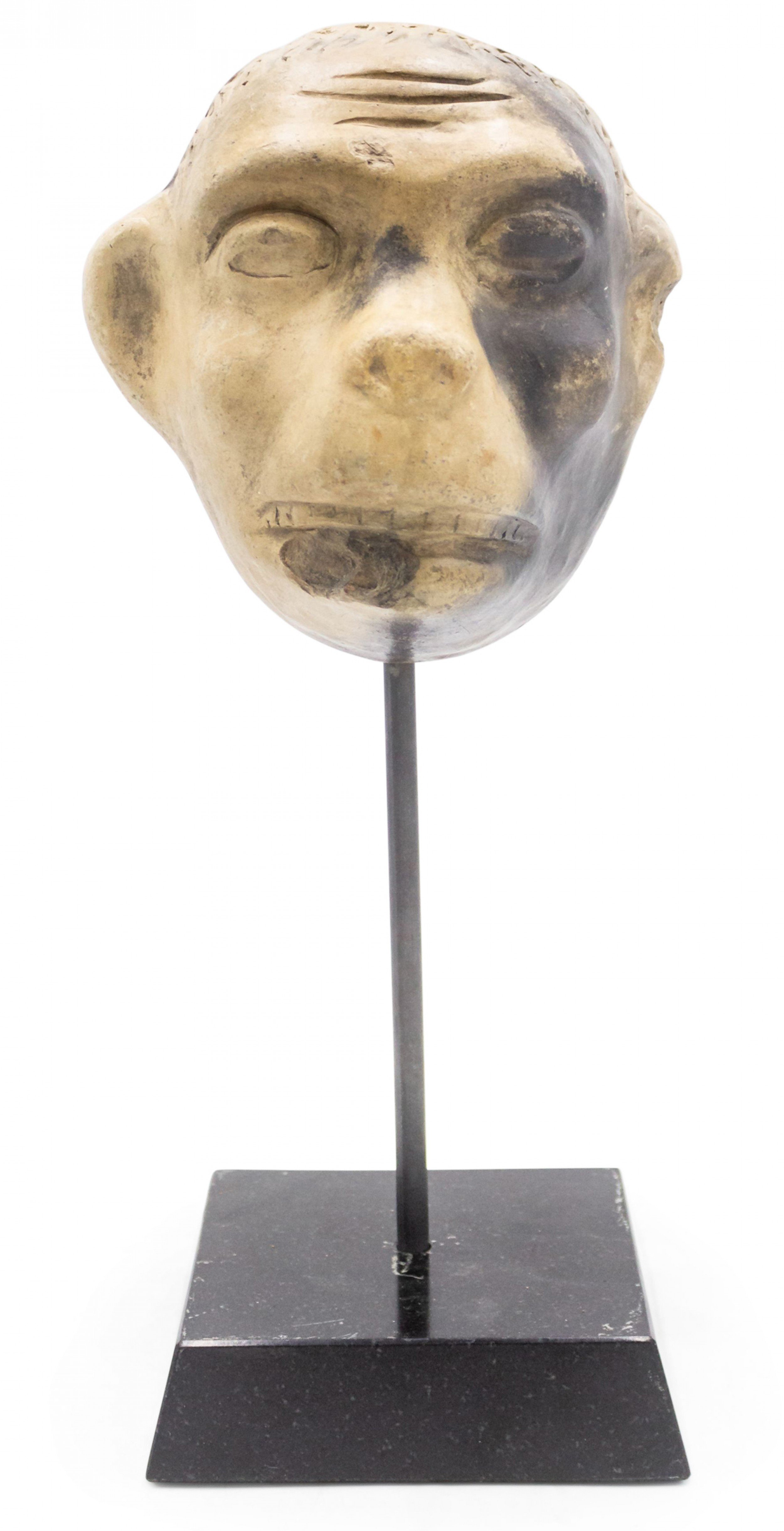 Continental German (late 19th Cent) sculpted terra-cotta master mask mold of a monkey face displayed on a square black marble base stand (part of a Collection).