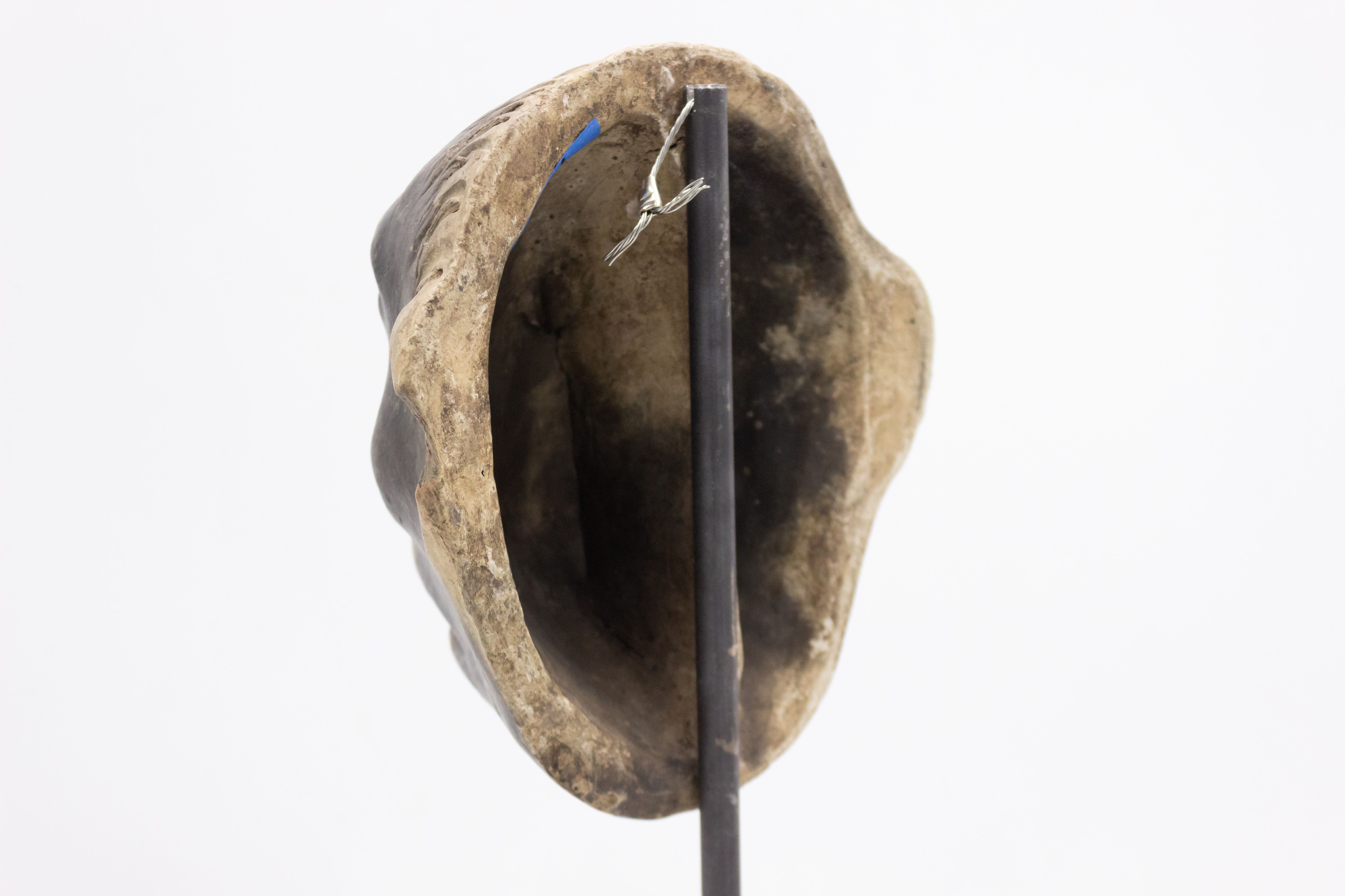 Continental German (late 19th Cent) sculpted terra-cotta master mask mold of a monkey face displayed on a square black marble base stand (part of a Collection)