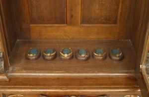 Style: Rustic Materials & Techniques: Carved, oak, pediment Category: Cabinets & Case Goods, Office/Library