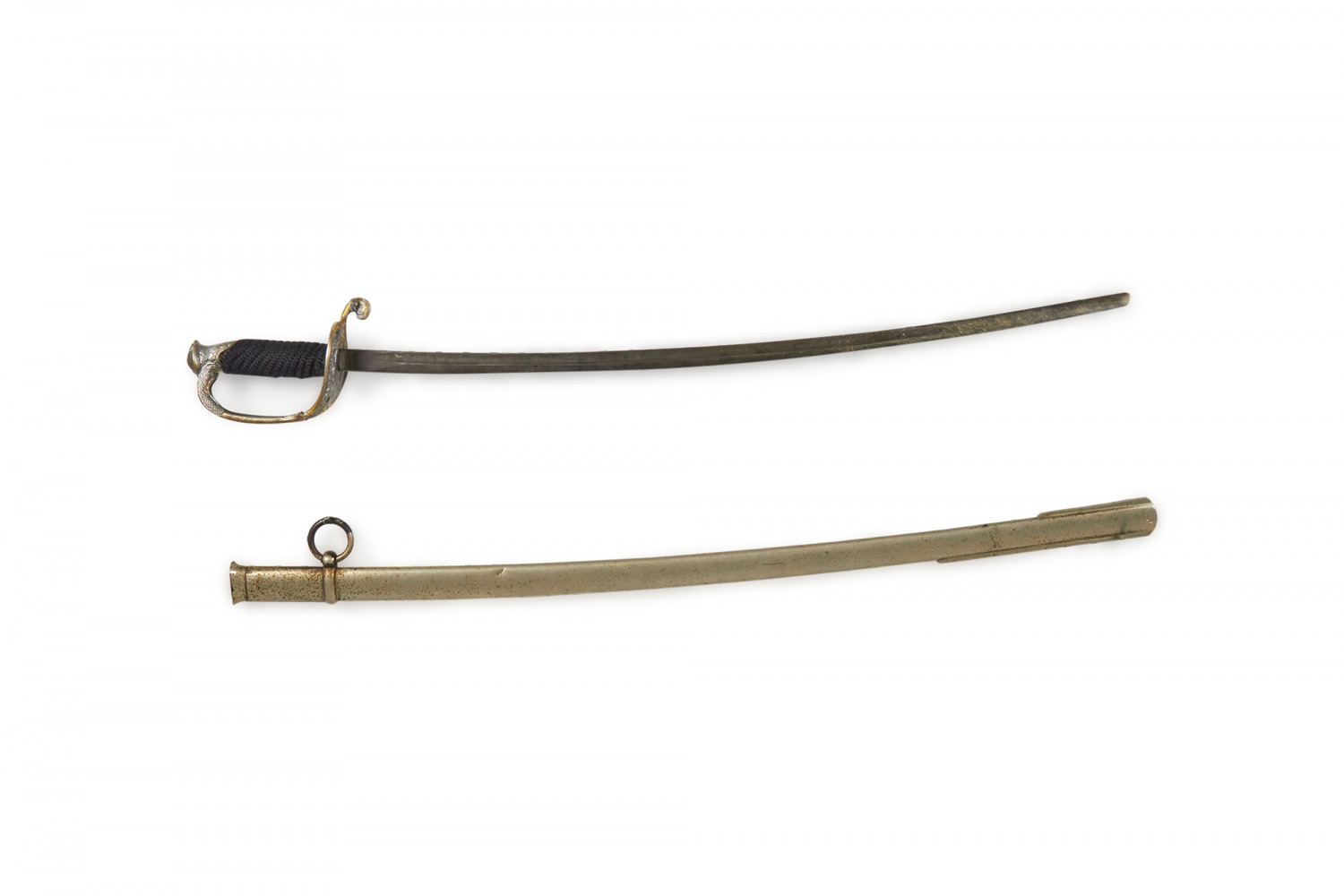 Continental (19th Century) metal sword with silver filigree handle wrapped in black rope with a small dolphin detail..