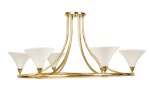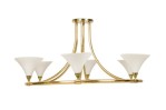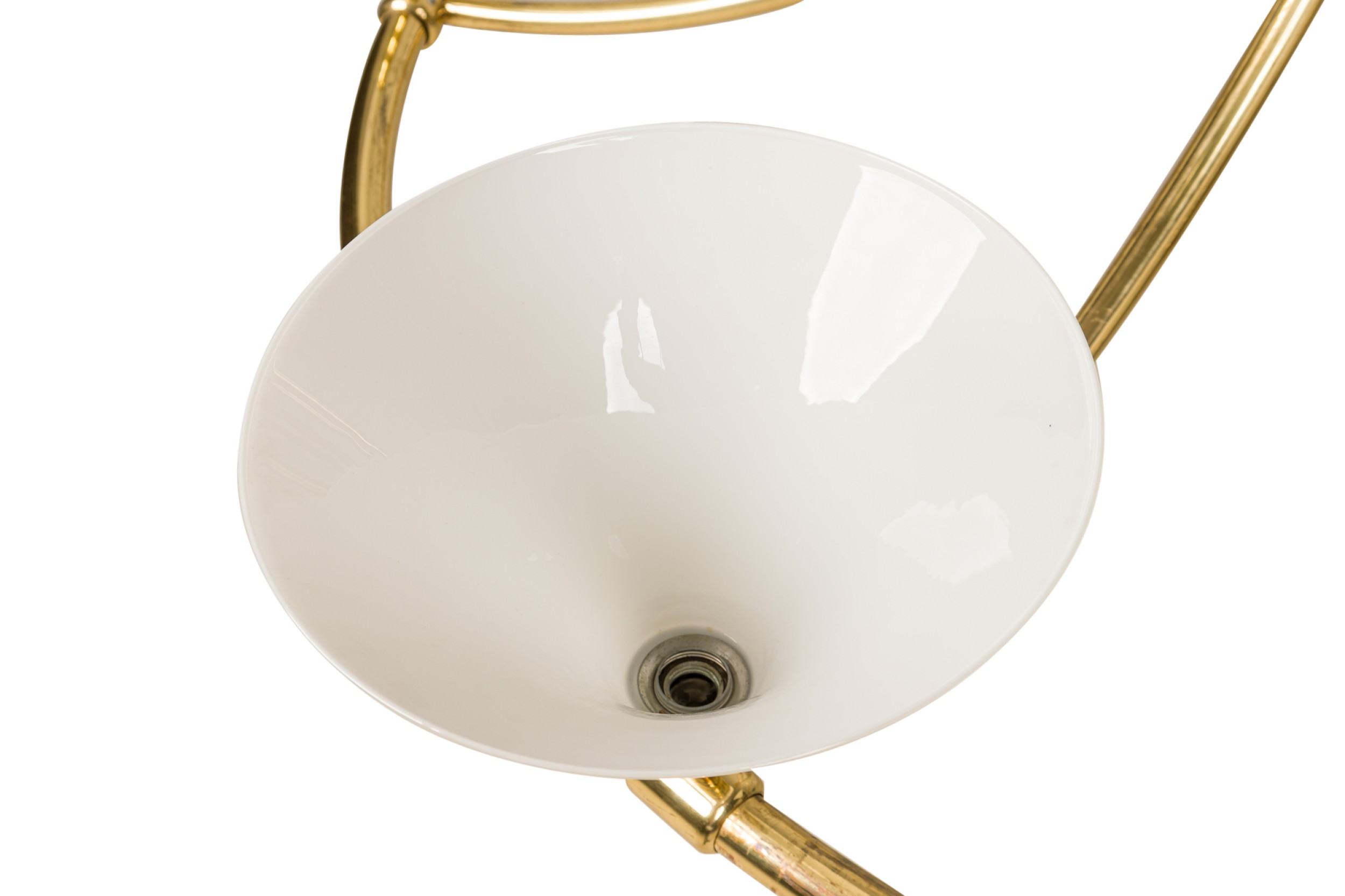 Continental Mid-Century Monumental Brass and White Glass 6-Light Chandelier