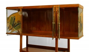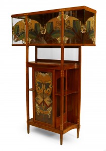 Style: Art Nouveau Materials & Techniques: Glass, mahogany, maple Category: Cabinets & Case Goods Good; Wear consistent with age and use