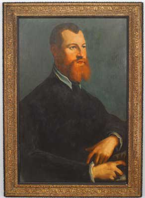 Copy of a portrait painting of a gentleman with a red beard in a blue suit