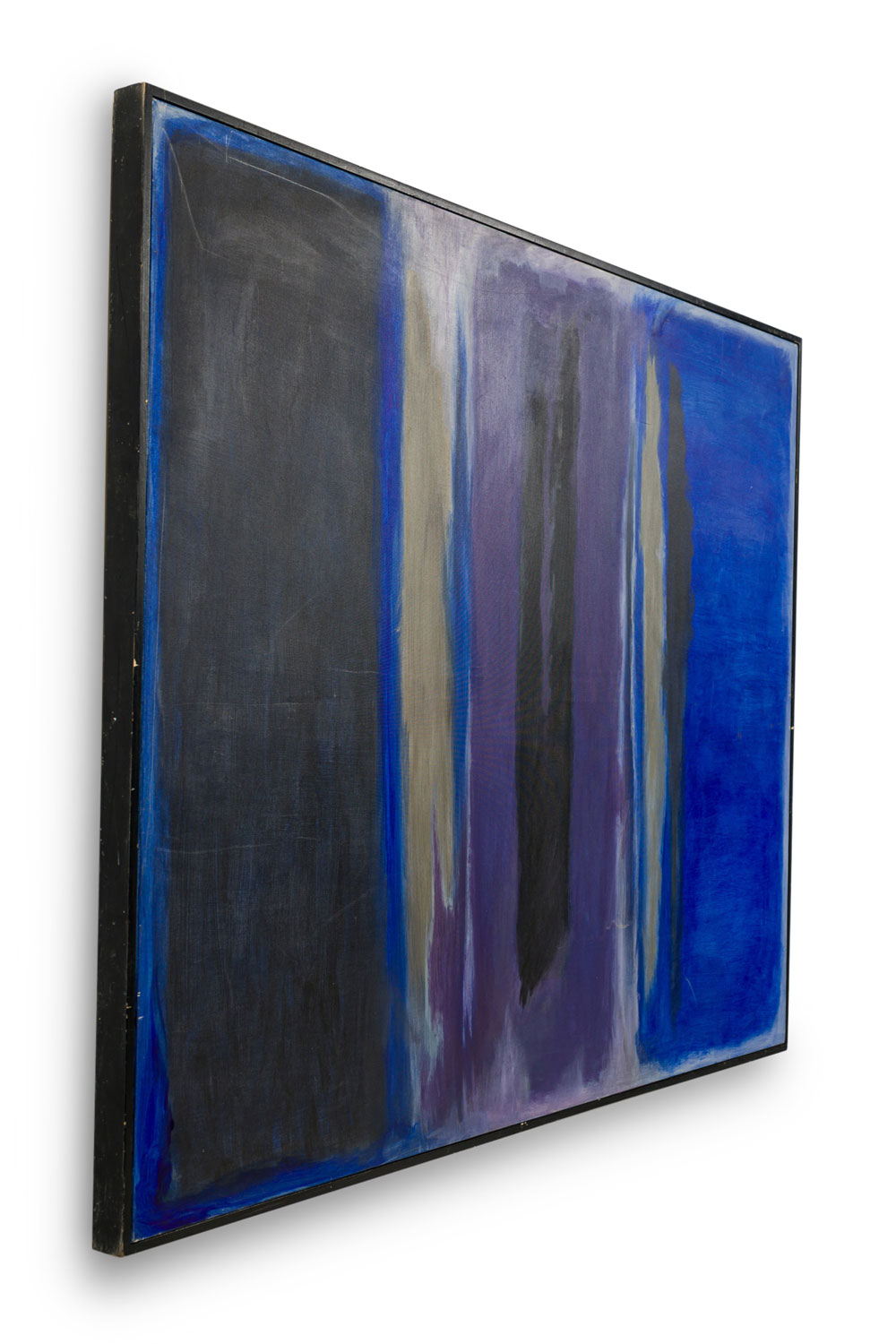 Copy of an Abstract Color Field painting showing black, purple and blue rectangles