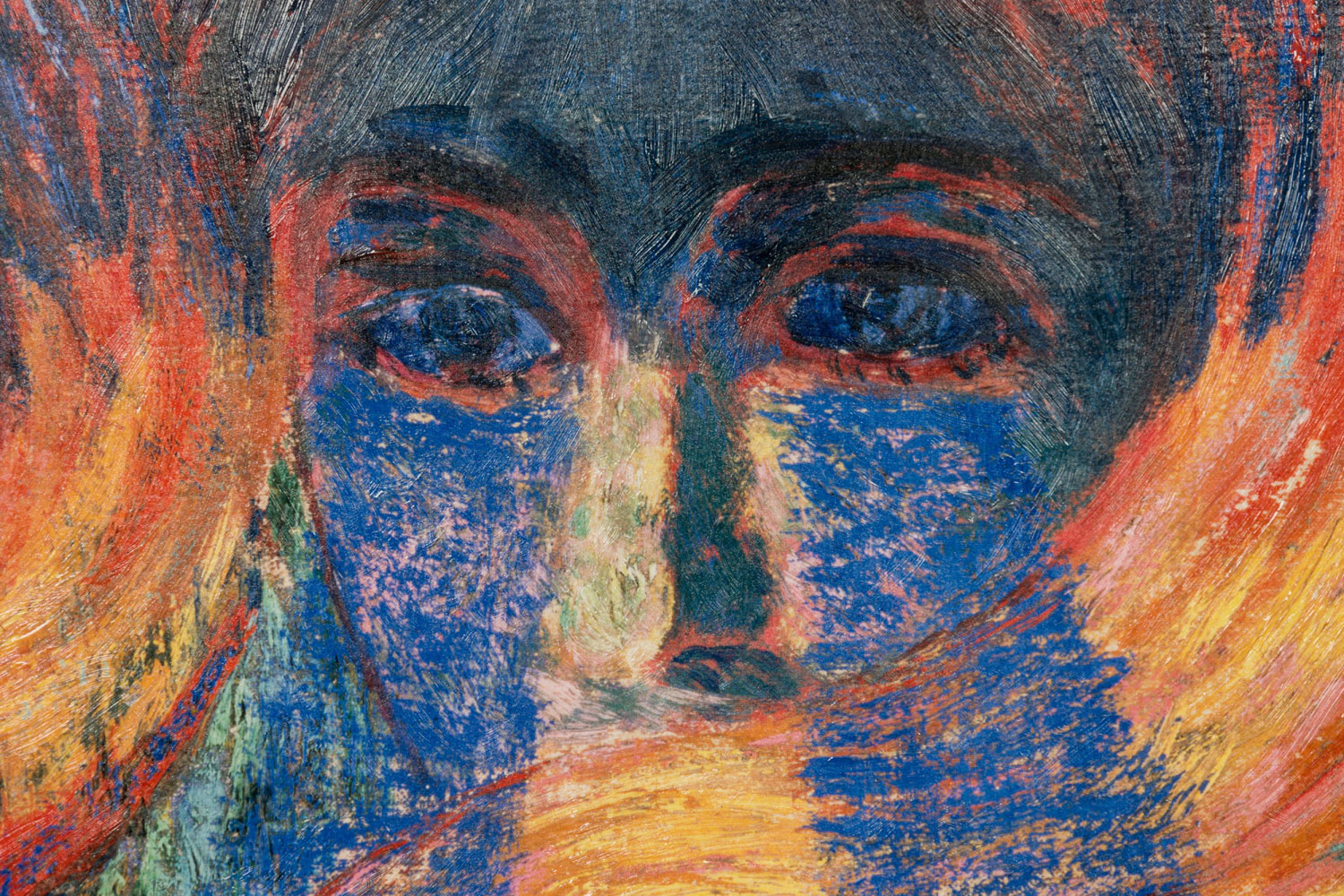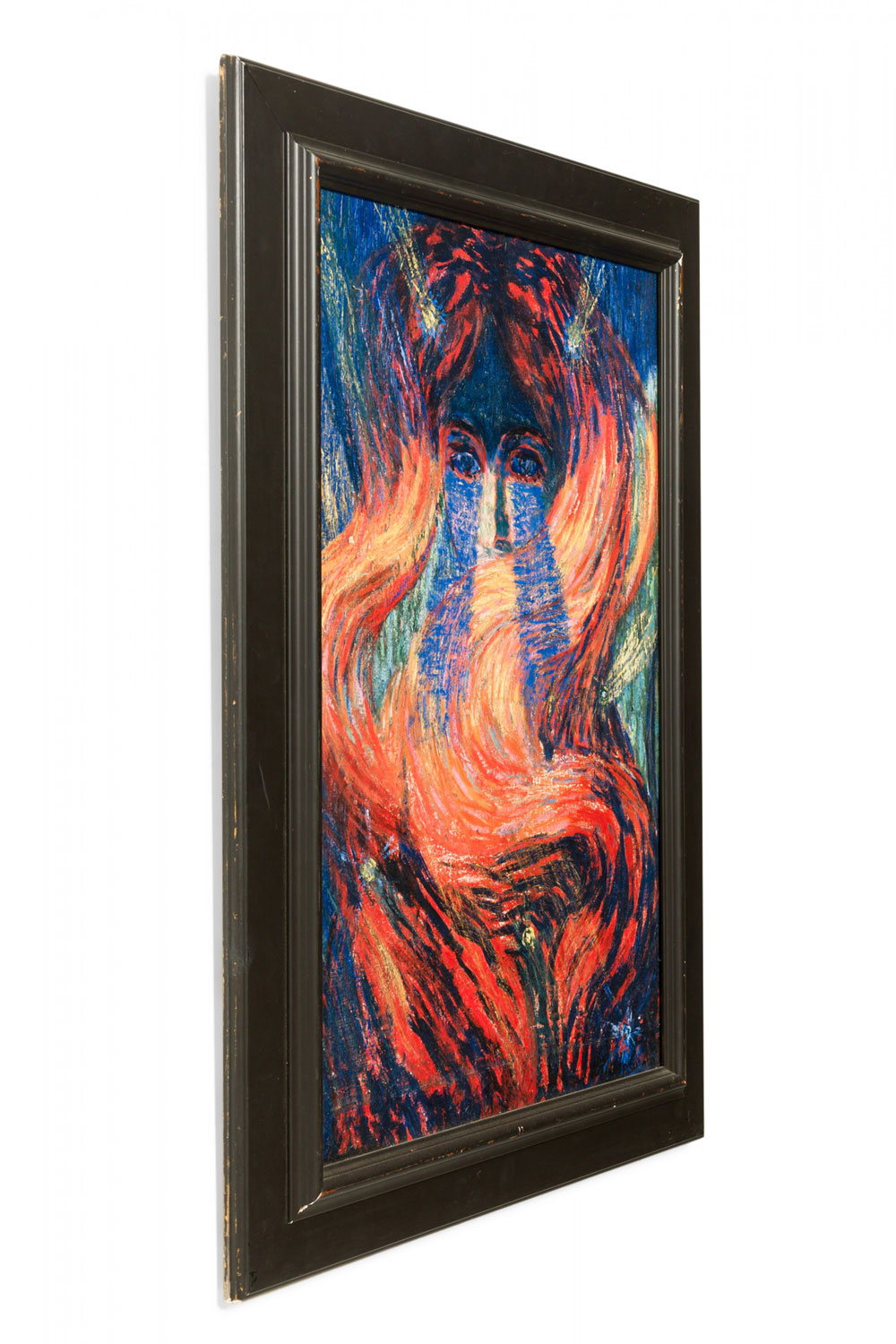 Copy of an abstract portrait painting showing a woman depicted in a Modern Style using blues, reds and yellows