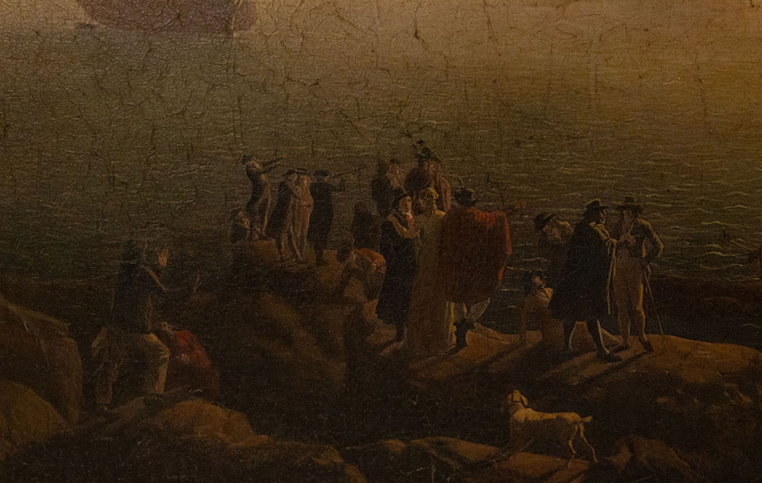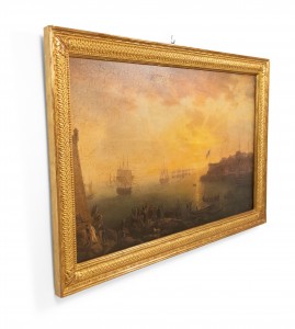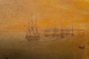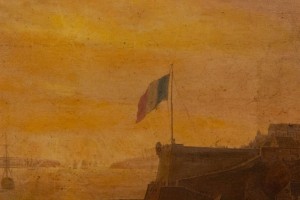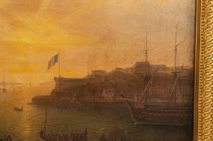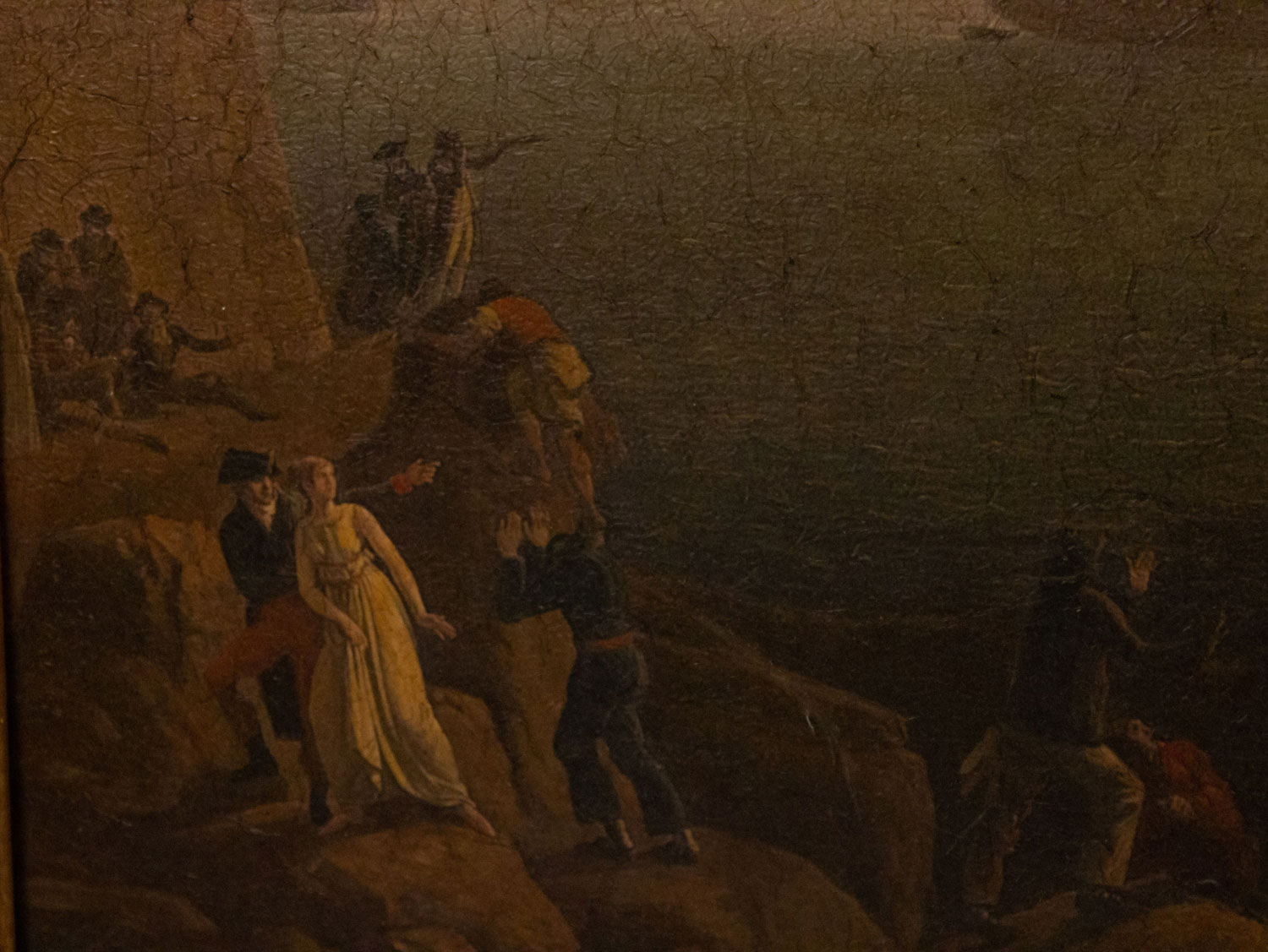 Copy of an impressionist painting titled "Fort Vimieux" showing a ship aground