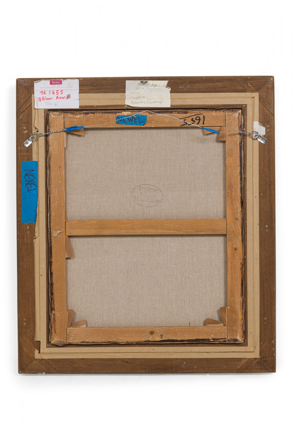 Copy of an impressionist vertical landscape titled "Bibemus Quarry" of forest with rock outcropping.