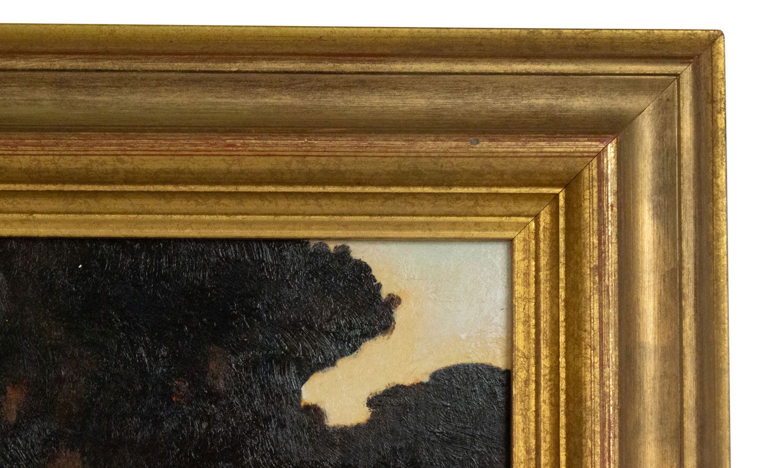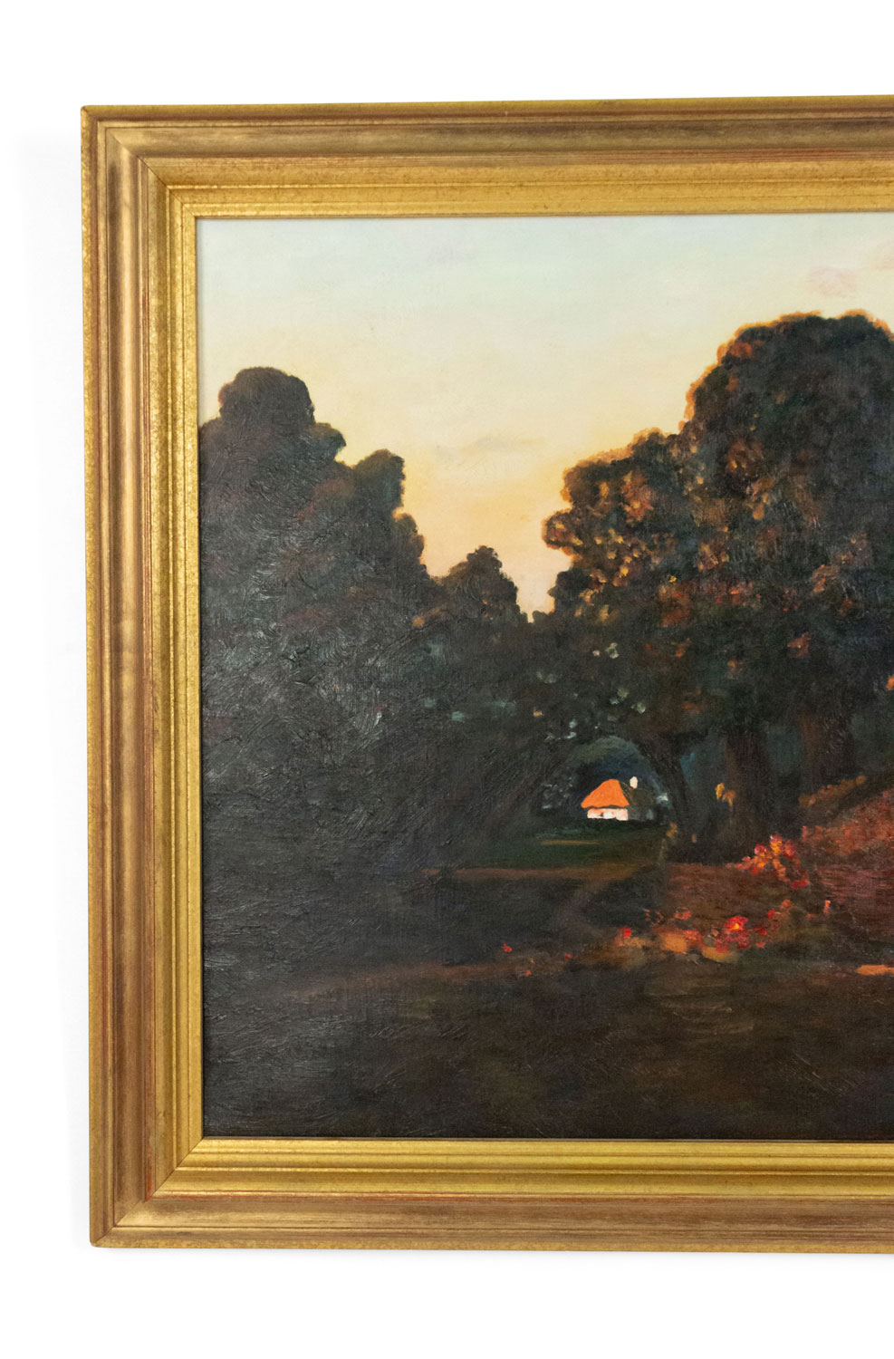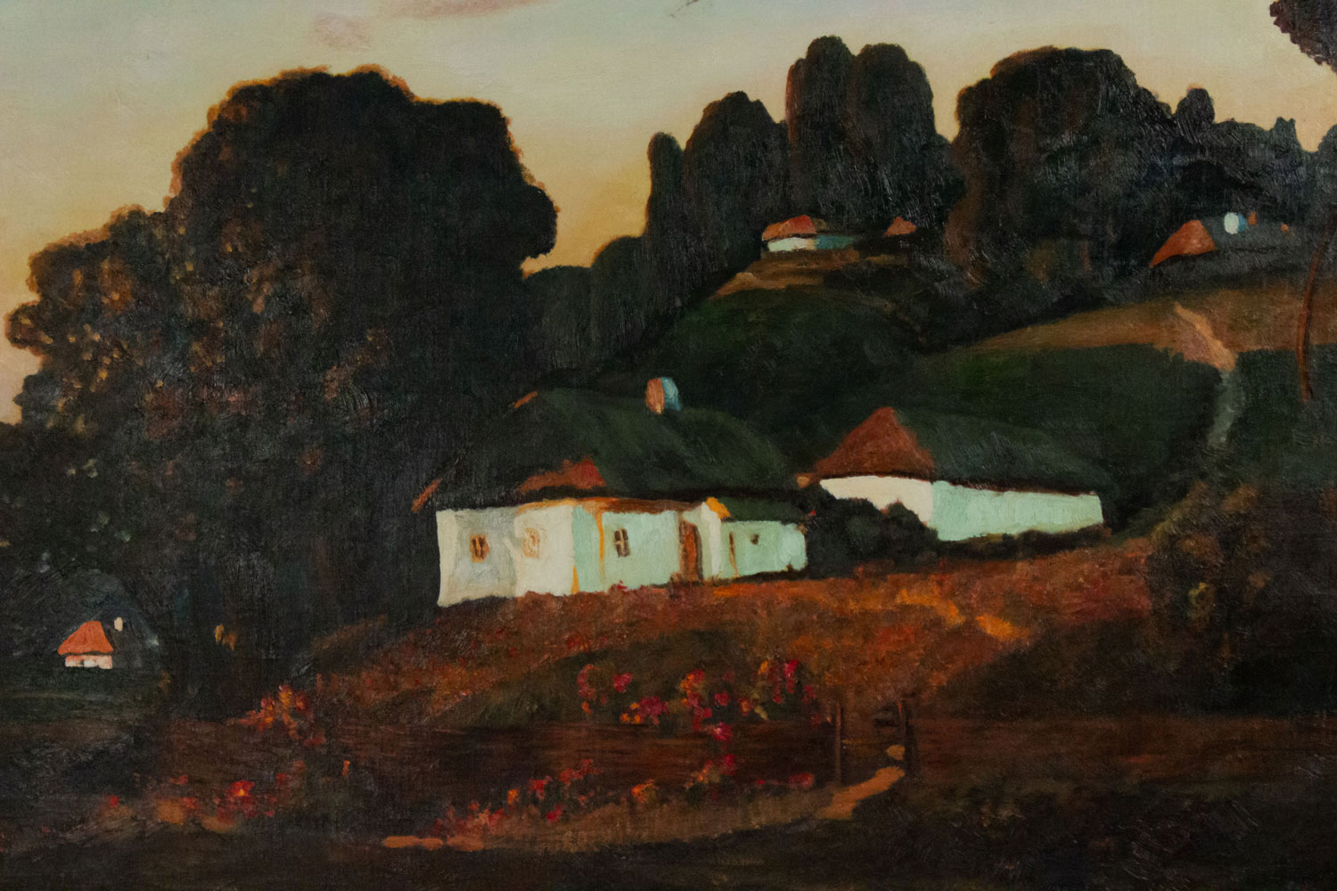 Copy of Impressionist landscape painting showing houses nestled in woods on a hillside