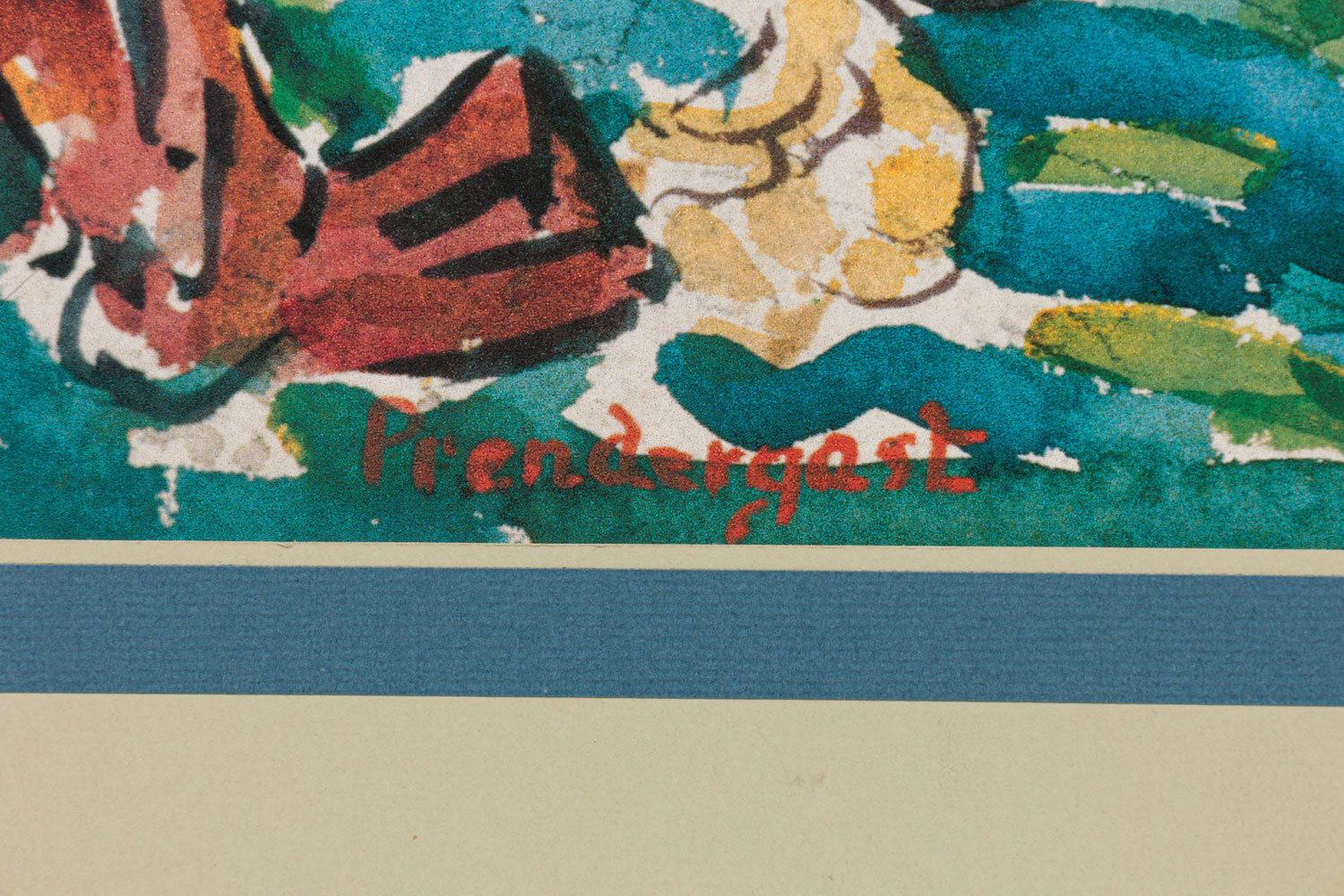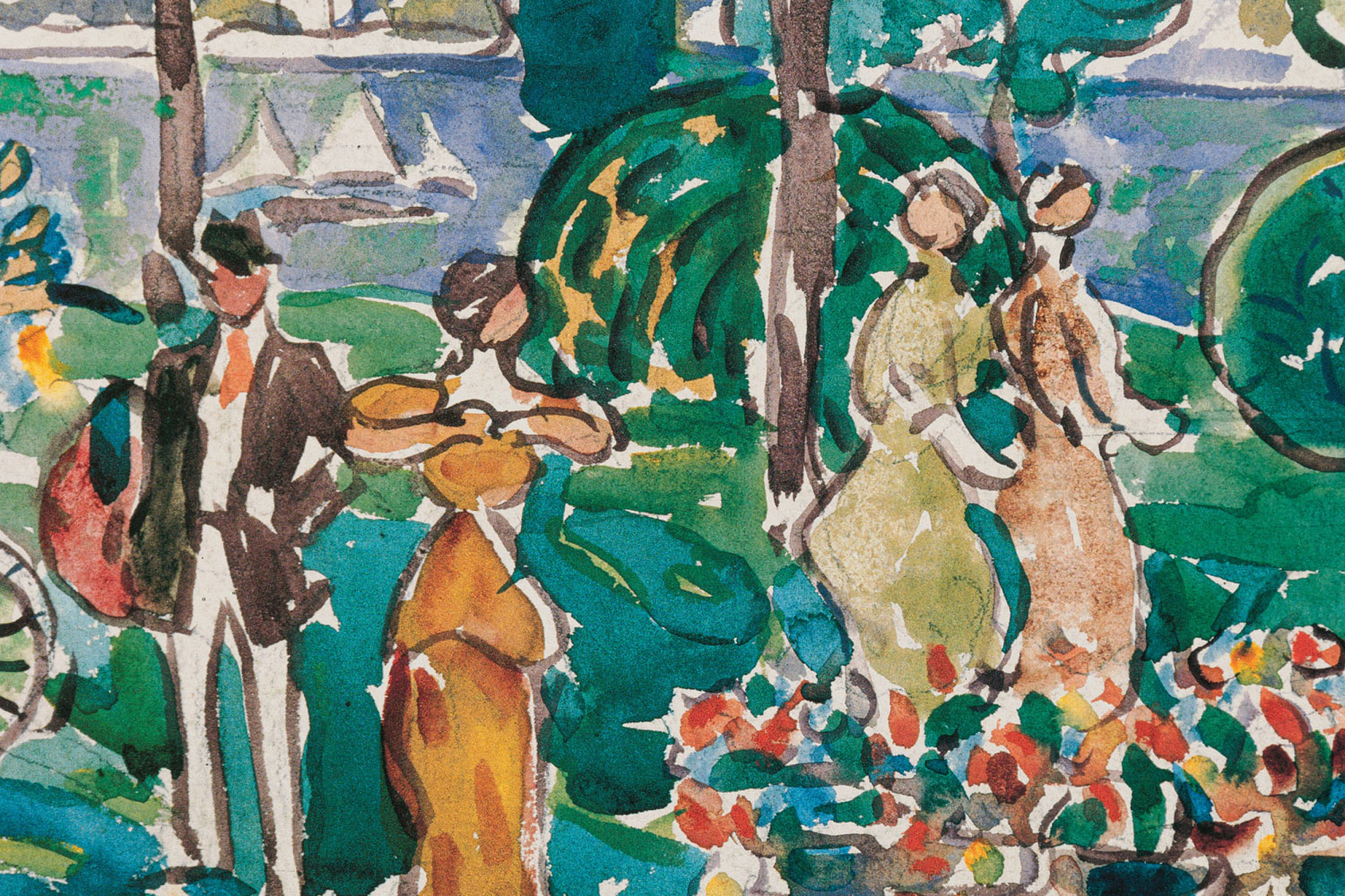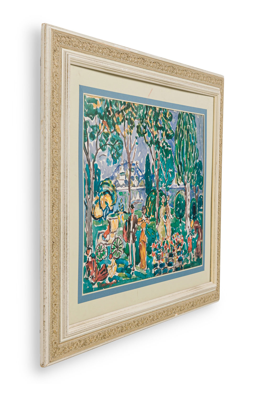 Copy of an impressionist landscape watercolor showing people by the seaside.