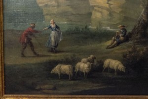 Copy of a vertical landscape painting showing a couple dancing al fresco.