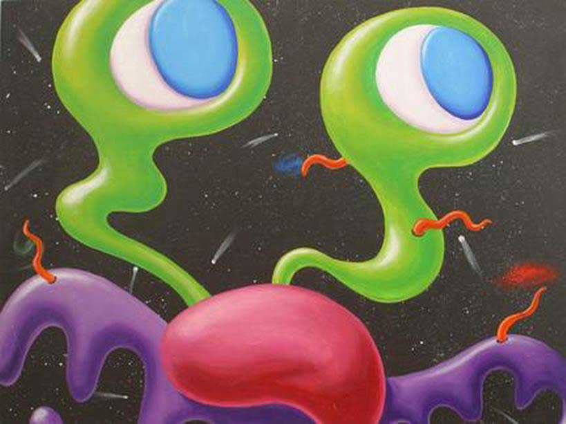 Copy of an abstract painting in a modern contemporary style showing green zoomographic shapes.