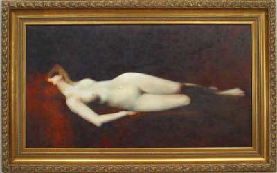 Copy of a painting titled "Sleeping" showing nude woman with red hair sleeping