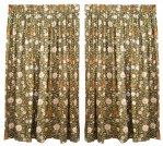 PAIR of cotton drapes with flowering vine "chintz" pattern on a slate green ground (PRICED AS PAIR).