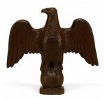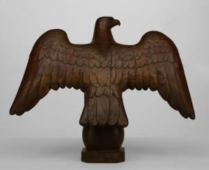 American Country style (French 19th/20th Cent) carved oak figure of an eagle with outstretched wings and perched on a globe shaped base (signed: M. Granolt) (NFS)