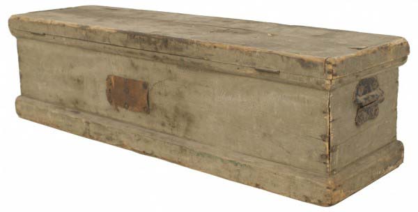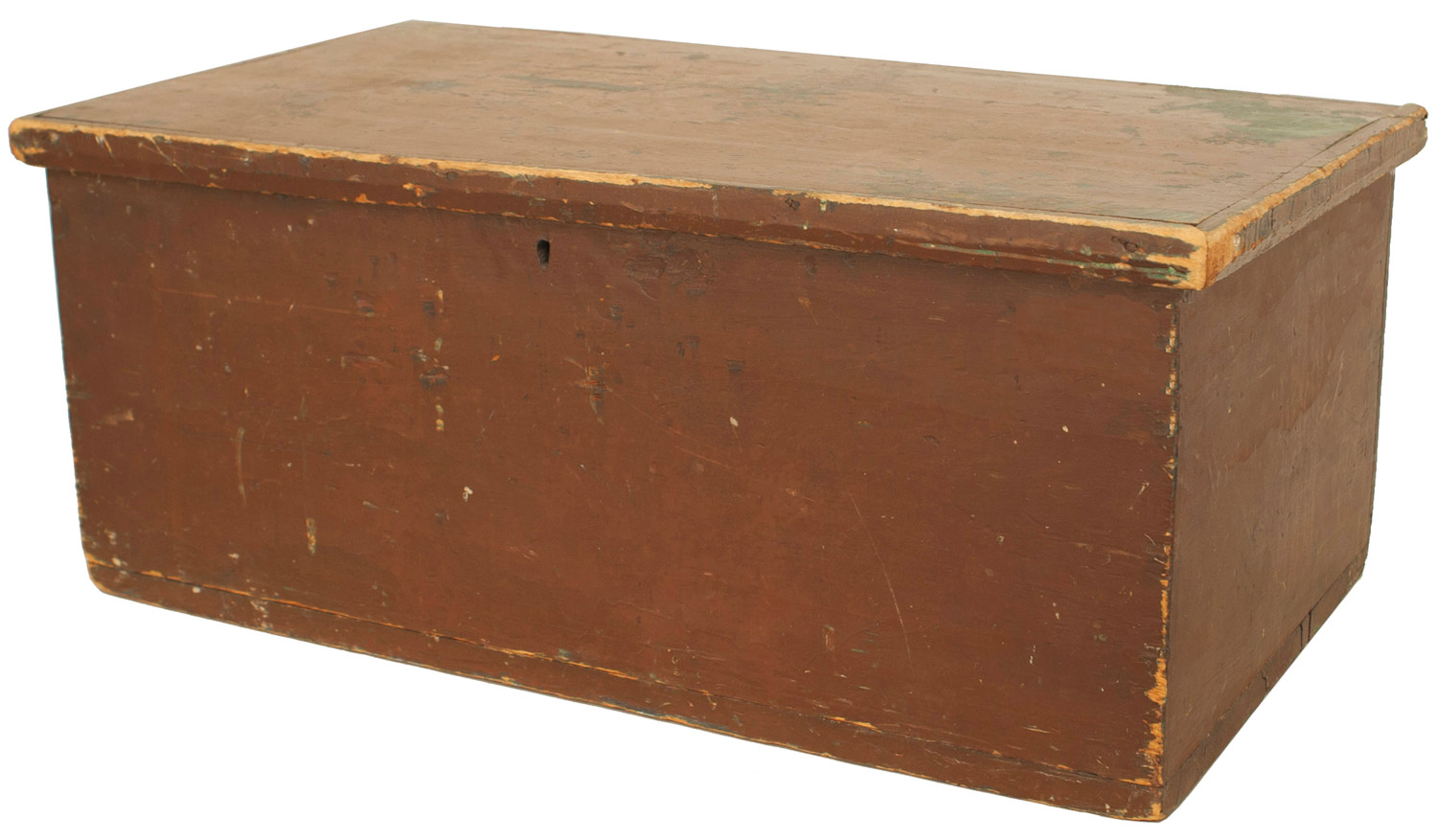 American Country Rustic weathered dark red painted rectrangular floor trunk.