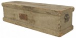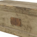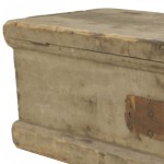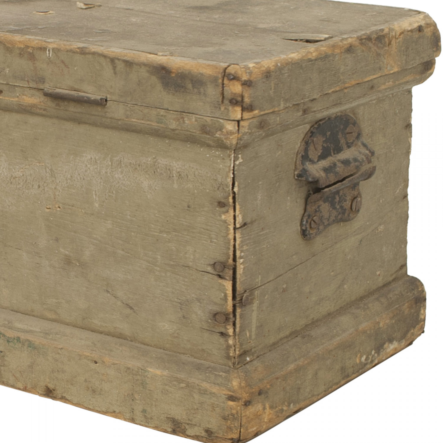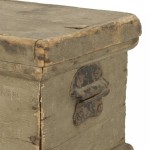 American Country Rustic weathered grey painted narrow rectangular (box) floor trunk with iron side handles.