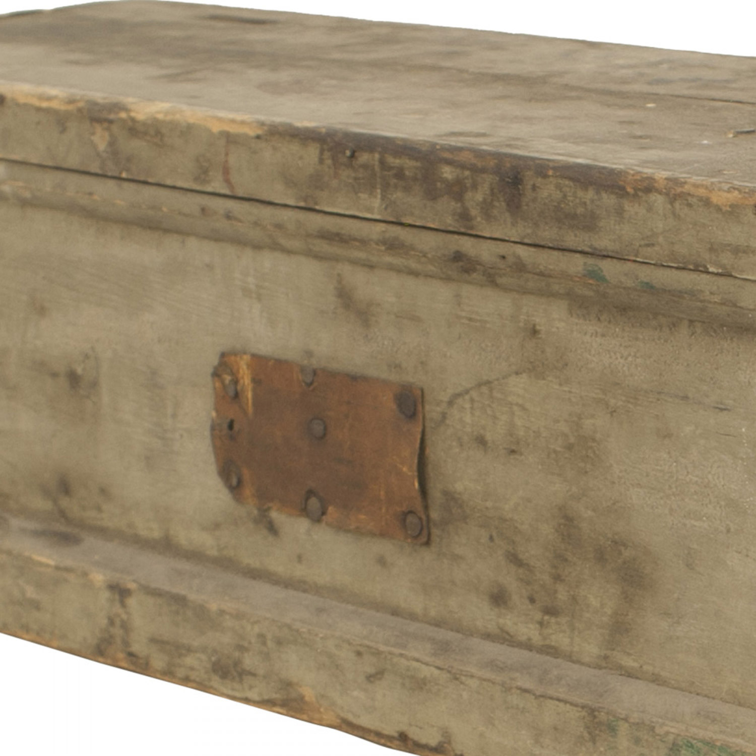 American Country Rustic weathered grey painted narrow rectangular (box) floor trunk with iron side handles