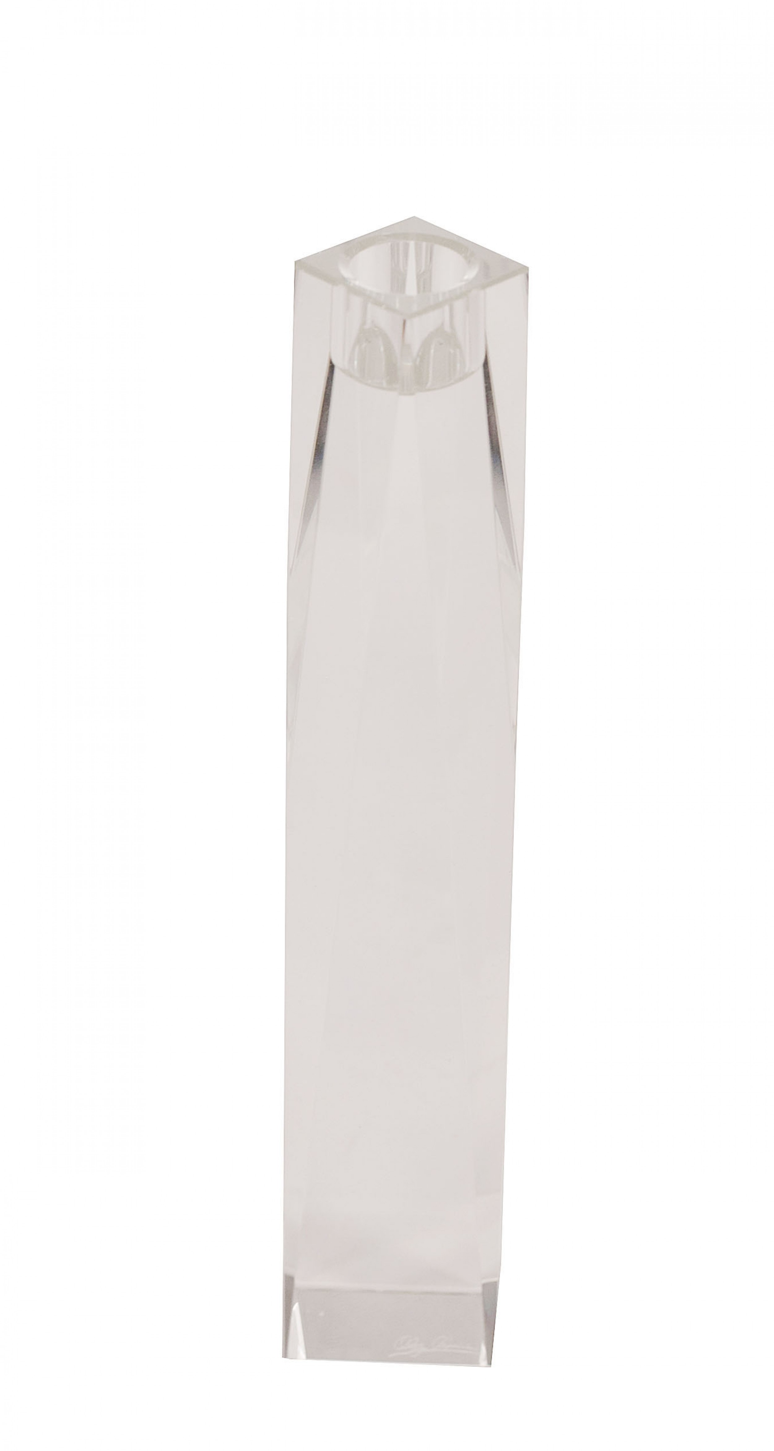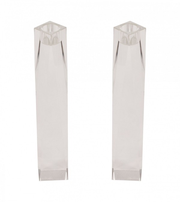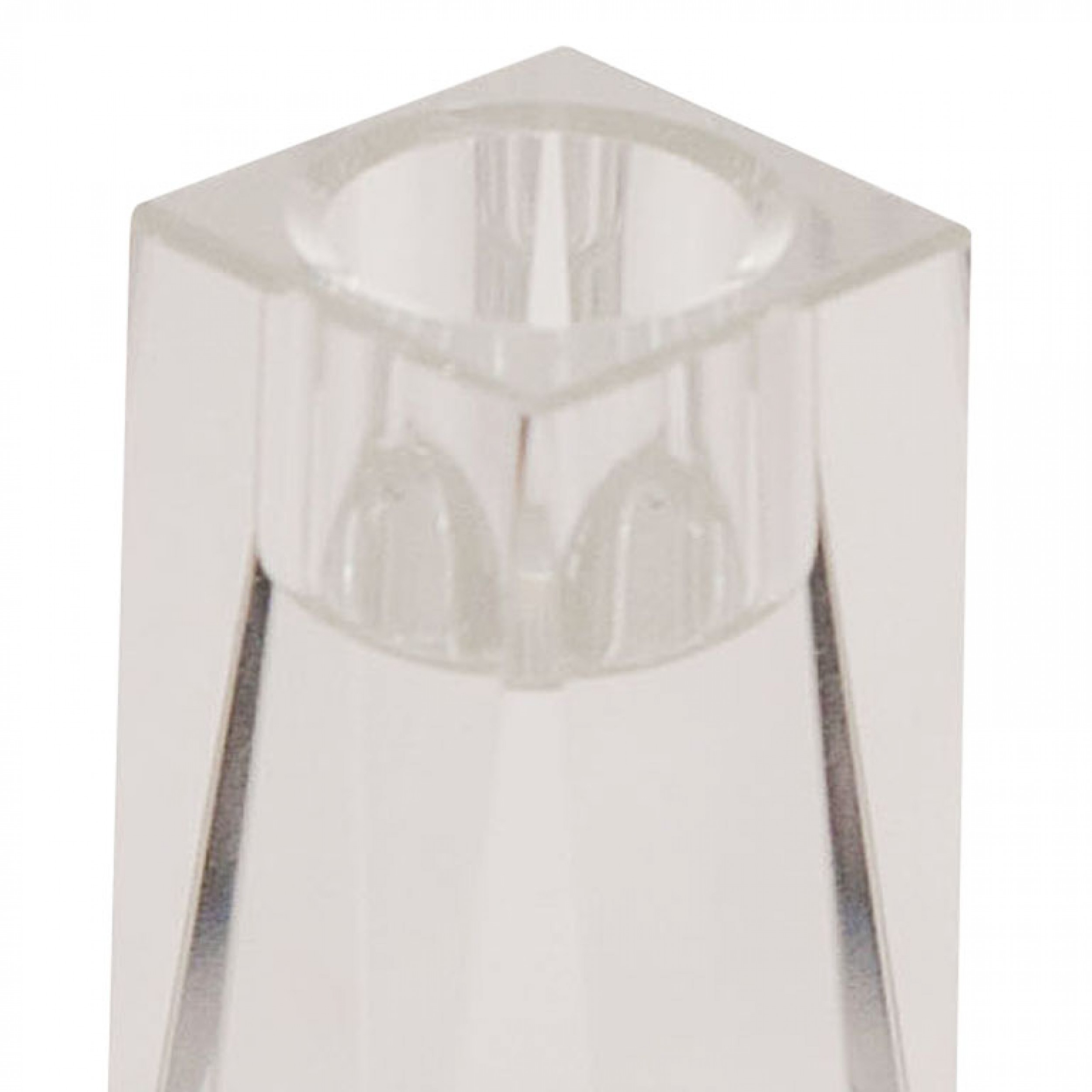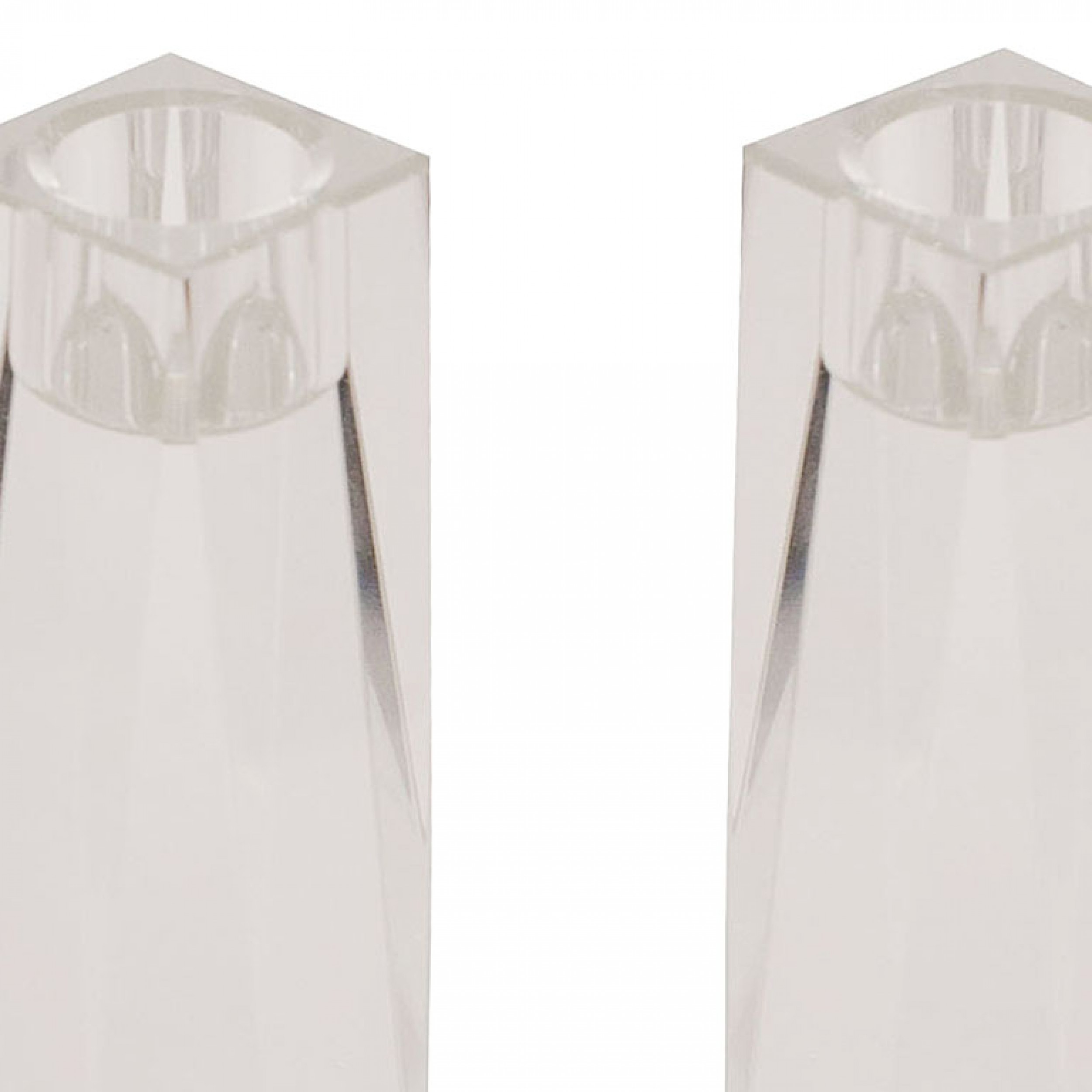 PAIR of clear crystal taper candlesticks with square bases and faceted, tapered sides (OLEG CASSINI) (PRICED AS PAIR)