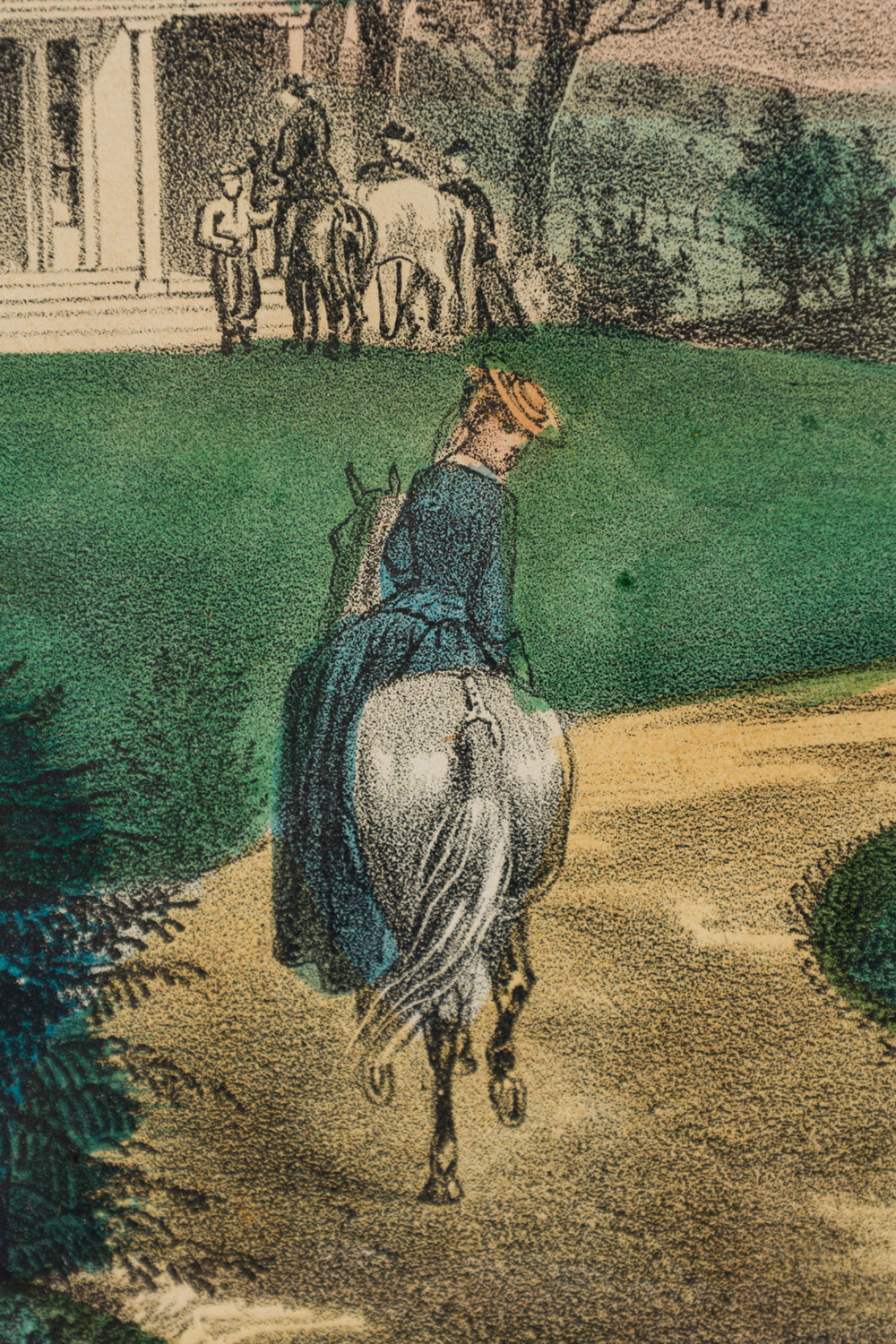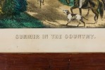 American Victorian wood framed lithograph of riders on path titled Summer in the Country (Currier & Ives)