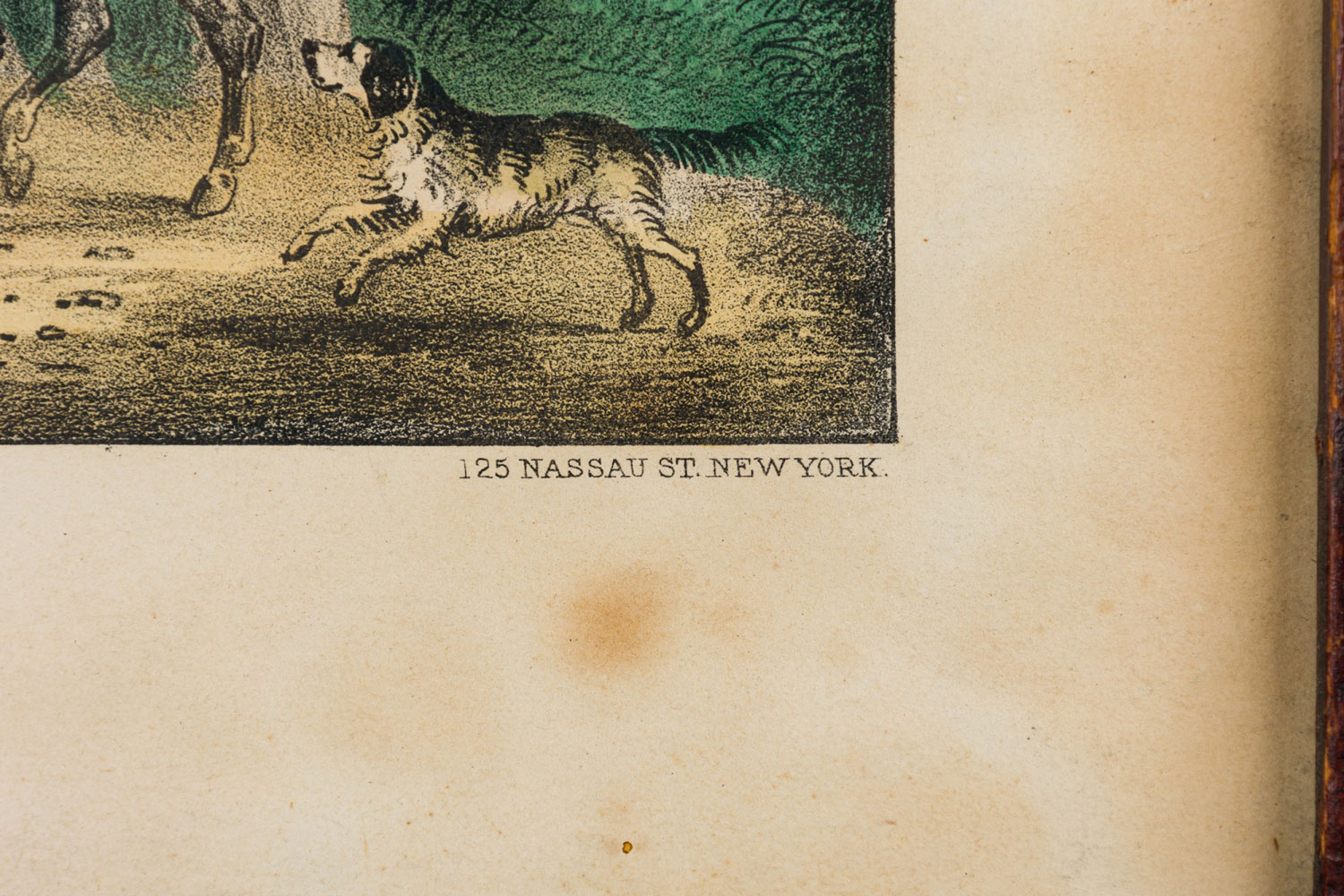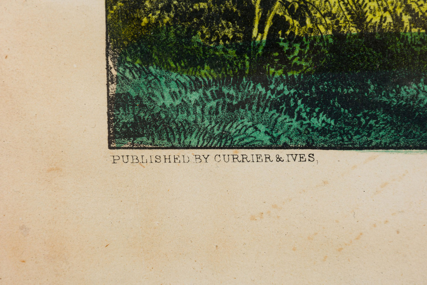 Currier & Ives was a prominent American printmaking firm that operated during the 19th century. Founded by Nathaniel Currier and James Merritt Ives, the company became widely known for producing high-quality lithographs that depicted various aspects of American life, including landscapes, historical events, and everyday scenes. Nathaniel Currier, born on March 27, 1813, in Roxbury, Massachusetts, showed an early interest in art and became an apprentice in a Boston lithography shop at the age of 15. After honing his skills, he established his own lithography business in 1835, initially focusing on producing small-scale prints and book illustrations. Currier's entrepreneurial spirit and commitment to artistic excellence soon propelled his business to success. James Merritt Ives, born on March 5, 1824, in New York City, had a background in finance and worked as a bookkeeper. However, his passion for art led him to join Currier's firm in 1852. Recognizing Ives' business acumen, Currier made him a partner in 1857, and the company was renamed Currier & Ives. Currier & Ives gained widespread popularity for their prints, which were affordable and accessible to a wide audience. Their prints depicted a range of subjects, including landscapes, cityscapes, portraits, sporting events, and historical scenes. The firm employed a team of talented artists who worked under the guidance of Currier and Ives to create the lithographs. Notable artists associated with the company include Arthur Fitzwilliam Tait, George Durrie, and Frances Flora Bond Palmer. The prints produced by Currier & Ives were characterized by their meticulous attention to detail, vibrant colors, and ability to capture the essence of American life. Their prints were widely distributed and became popular household decorations, making Currier & Ives a household name across the United States. Currier & Ives' prints not only provided aesthetic pleasure but also served as a visual record of American history and culture during a time of significant social and technological change. Their prints documented important events such as the American Civil War, the expansion of the railroad system, and the growth of urban centers. Despite their success, Currier & Ives faced challenges in the late 19th century with the advent of new printing technologies, such as photography and chromolithography. These advancements led to a decline in demand for traditional lithographs. Nathaniel Cur