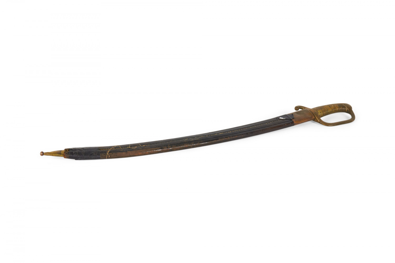 English Renaissance Curved Brass Sword and Leather Scabbard