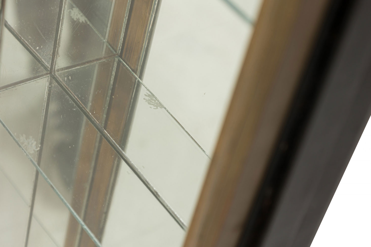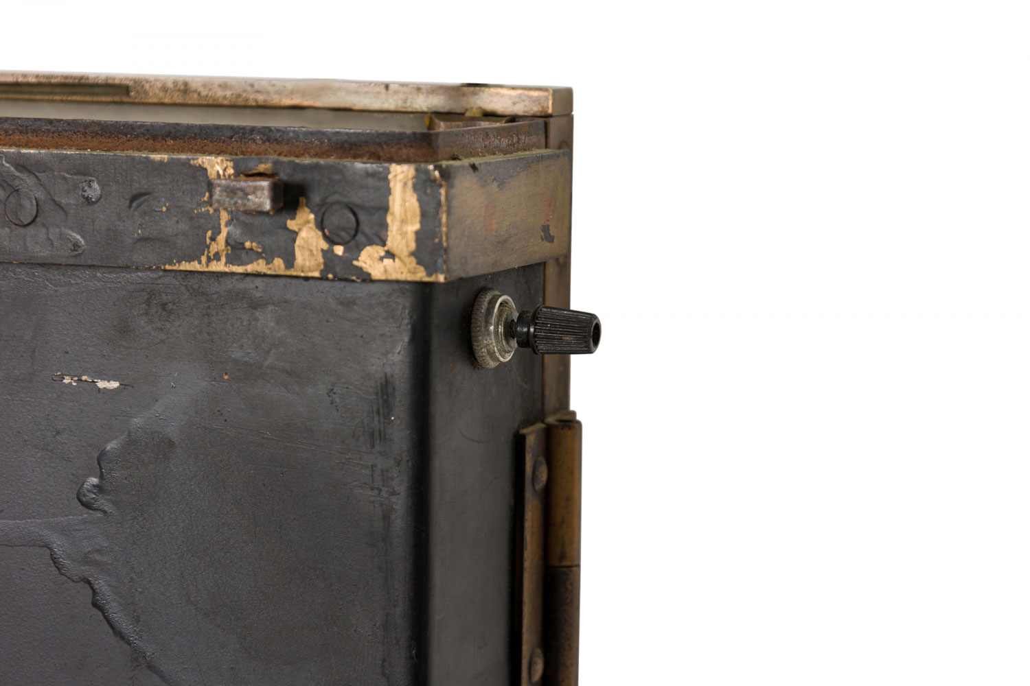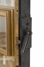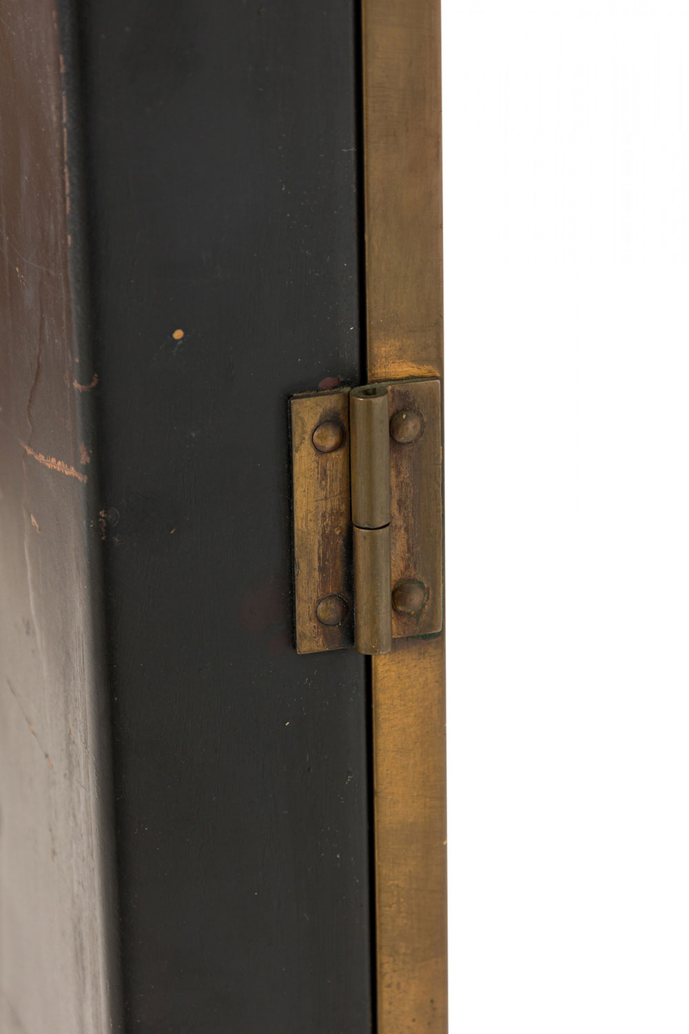 Style: American Materials & Techniques: Brass, glass, metal Category: Cabinets & Case Goods Condition: Wear to finish, Bronze shows patina as expected, needs rewiring. Good; Wear consistent with age and use