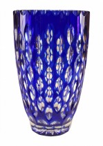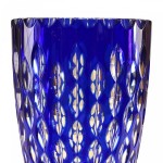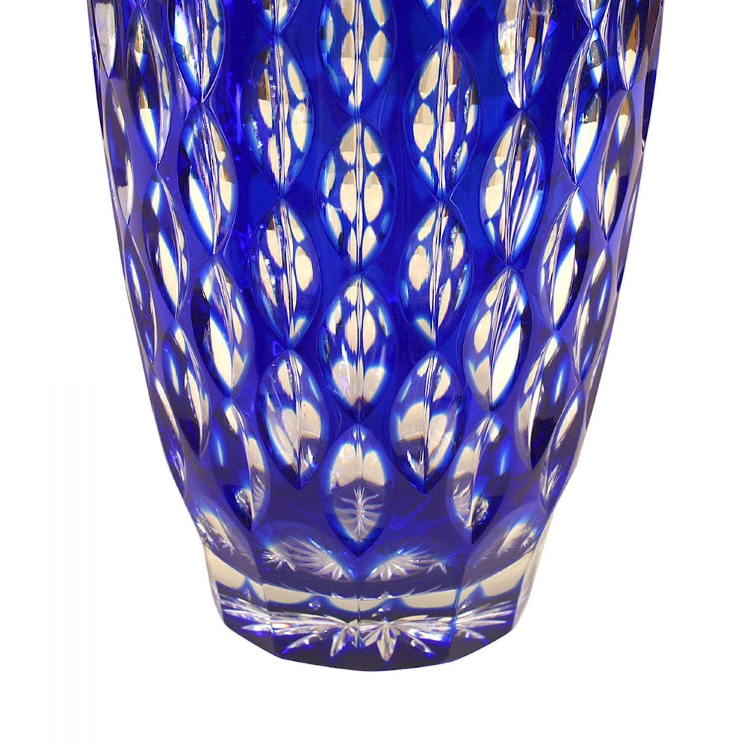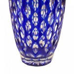 Art Deco Continental (Czechoslovakia) taper cylindrical clear and blue glass vase with geometric oval pattern..