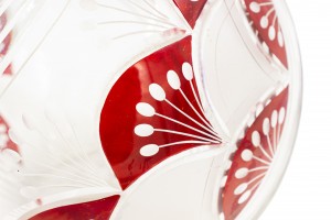 Art Deco Continental (Czechoslovakia) round vase with geometric cut glass design and ruby overlay trim..