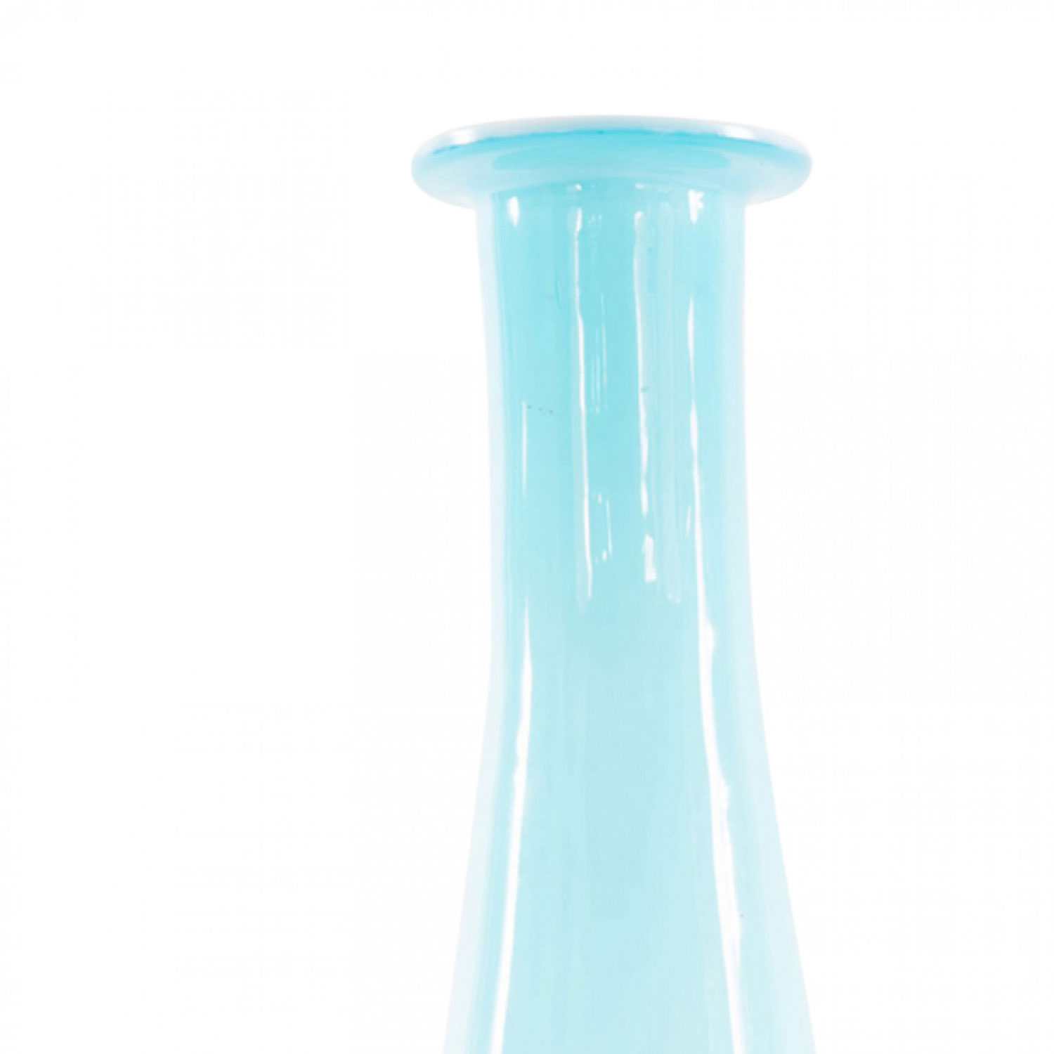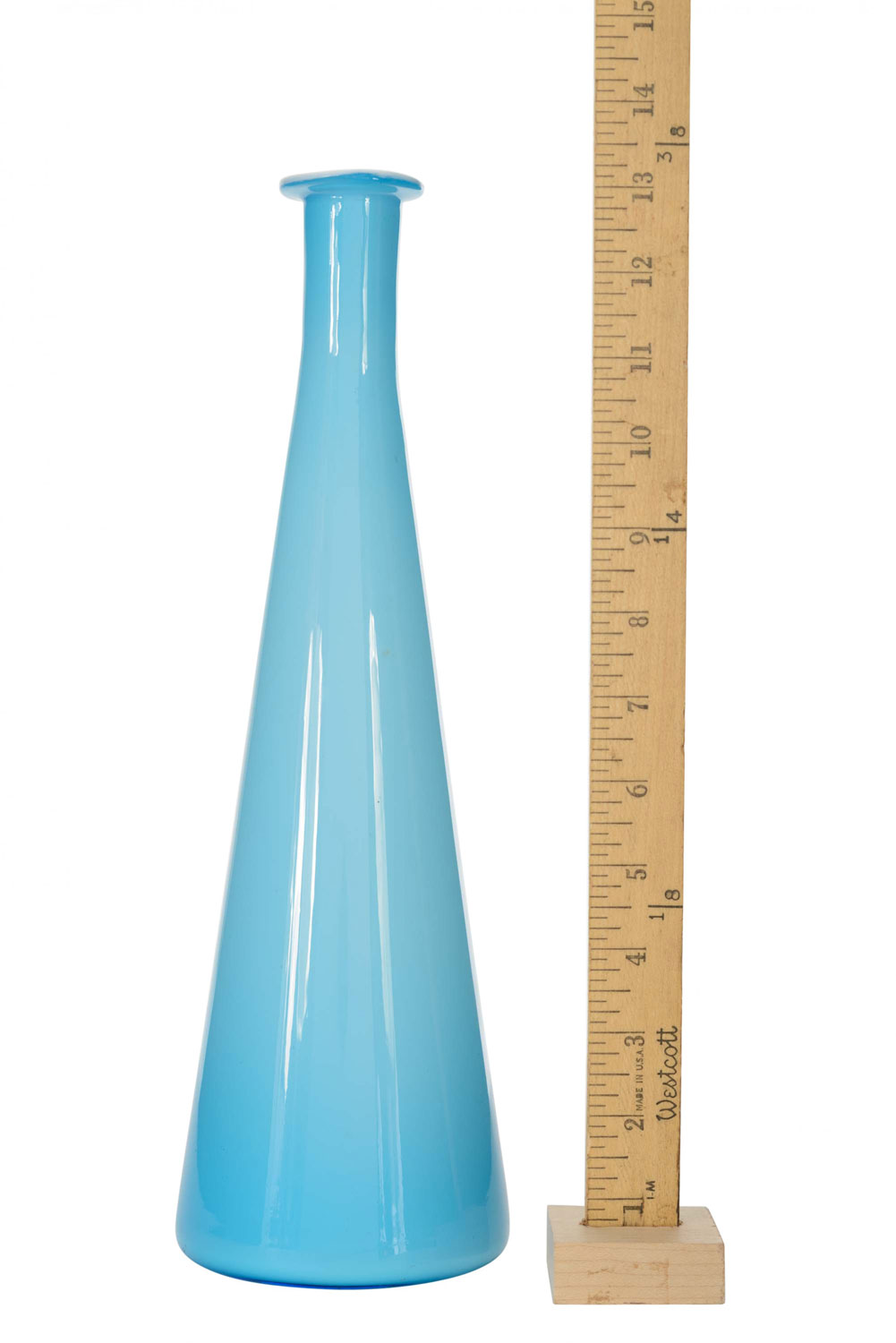 Danish Mid-Century tall tapered blue and white case glass bud vase with a flared rim.