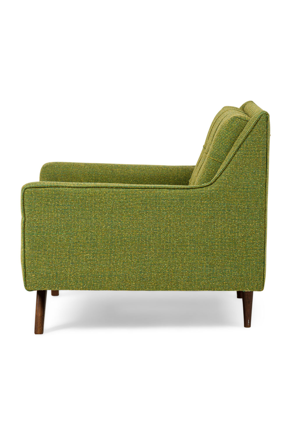 Danish Mid-Century Style Green Tweed Tufted Armchair