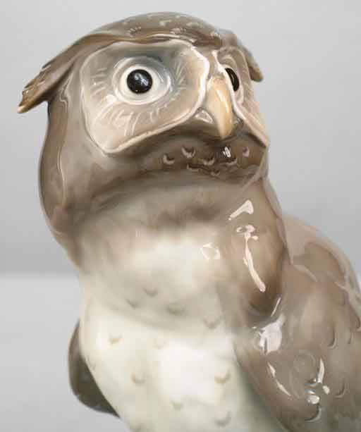 Continental Danish (Copenhagen) porcelain figure of grey & white owl perched on base (19th Cent).