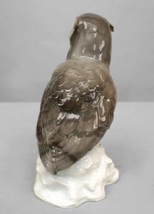 Continental Danish (Copenhagen) porcelain figure of grey & white owl perched on base (19th Cent)