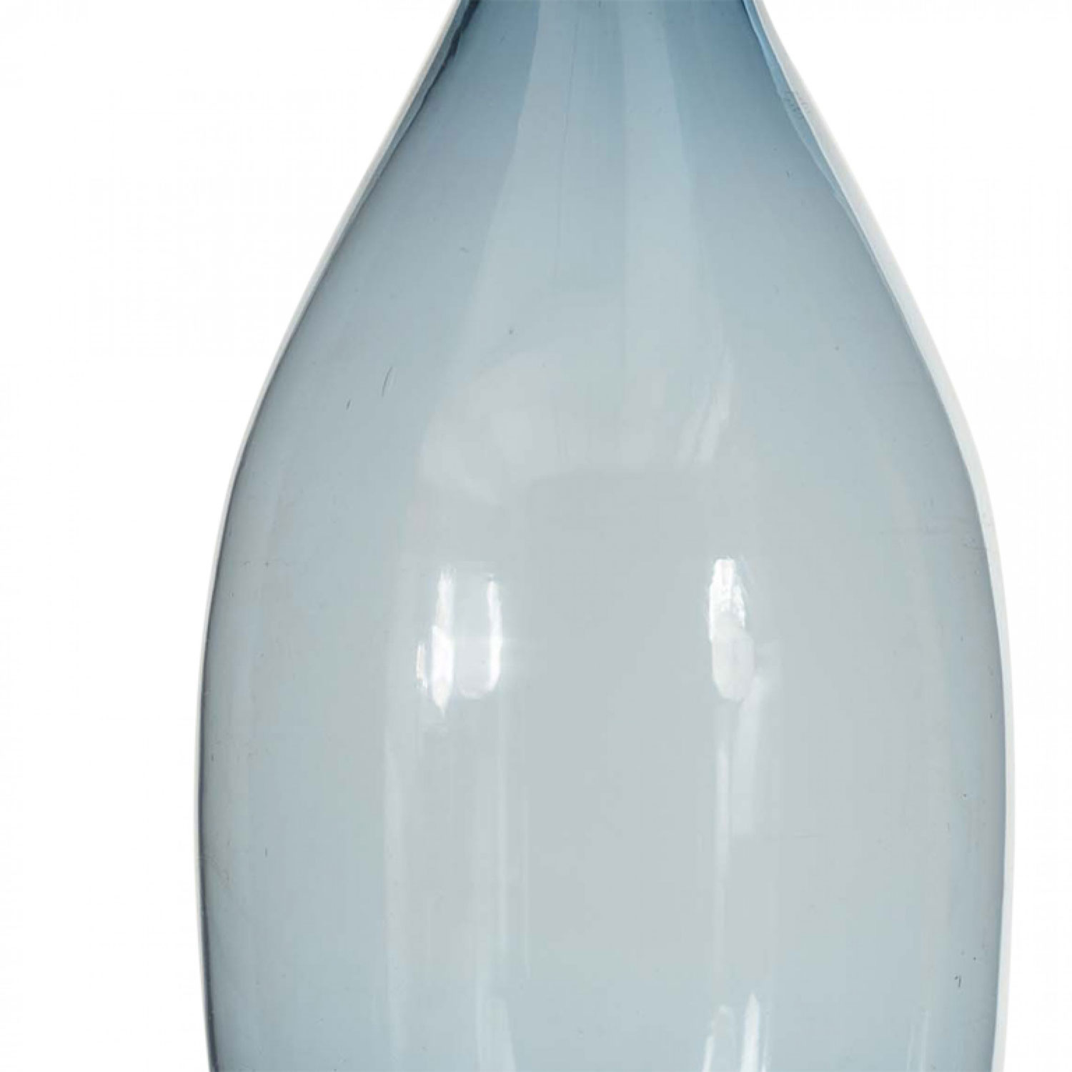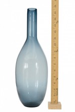 Tall bottle-shaped dark blue tinted glass bud vase with acylindrical neck