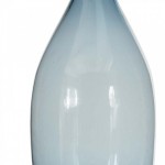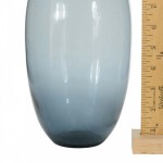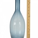 Tall bottle-shaped dark blue tinted glass bud vase with acylindrical neck.