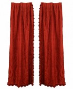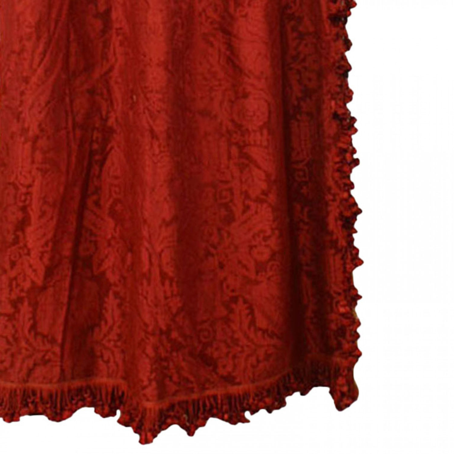 PAIR of English Victorian style deep rose colored silk damask drapes with fringe (PRICED AS PAIR).