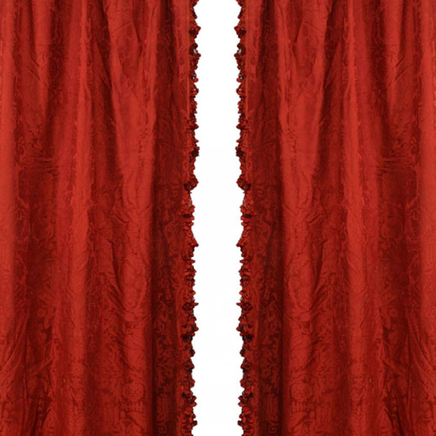 Pair of English Victorian Style Deep Rose Silk Damask Drapes