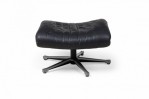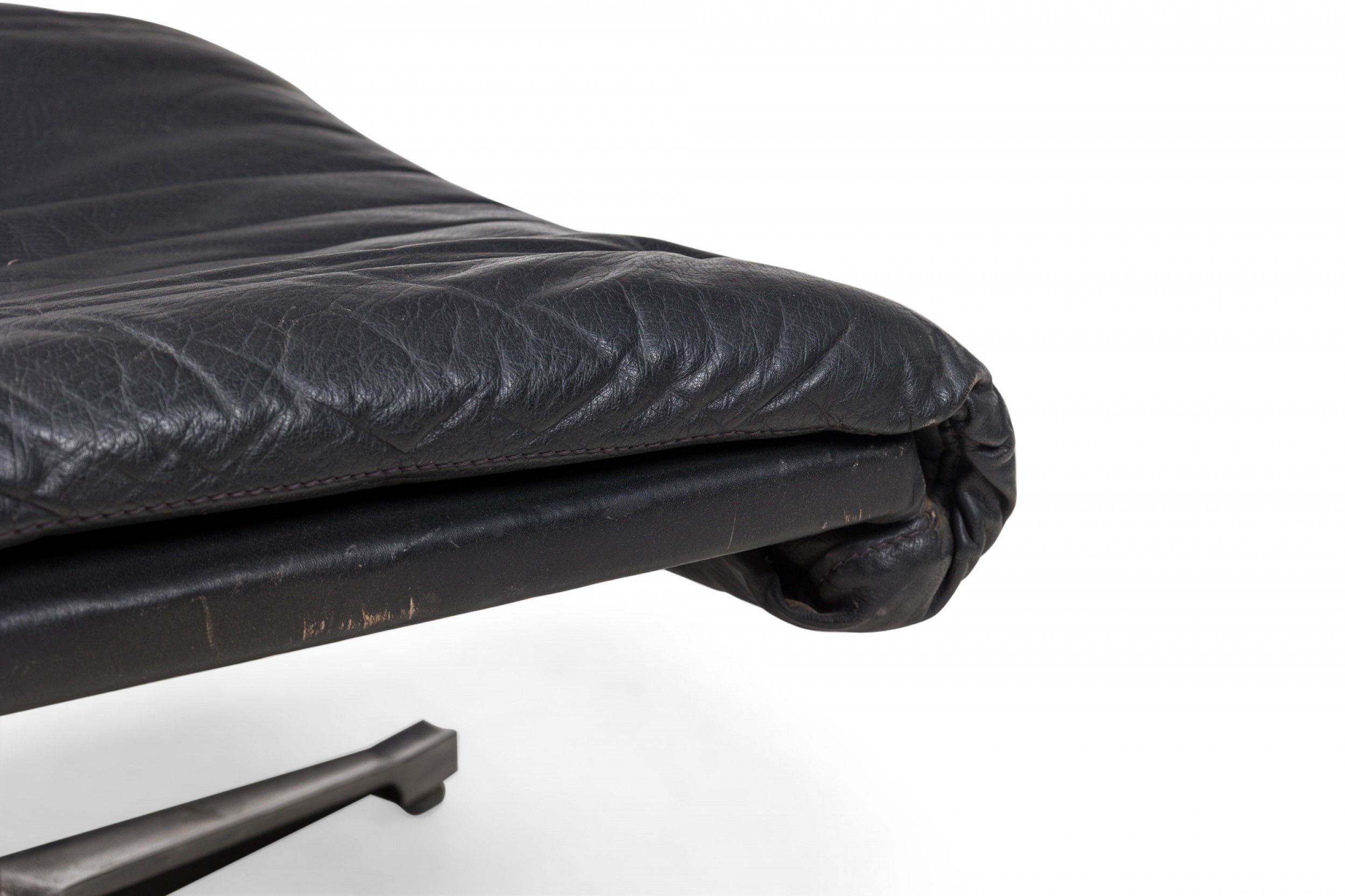 De Sede Mid-Century Swiss Metal & Black Leather Upholstered Ottoman