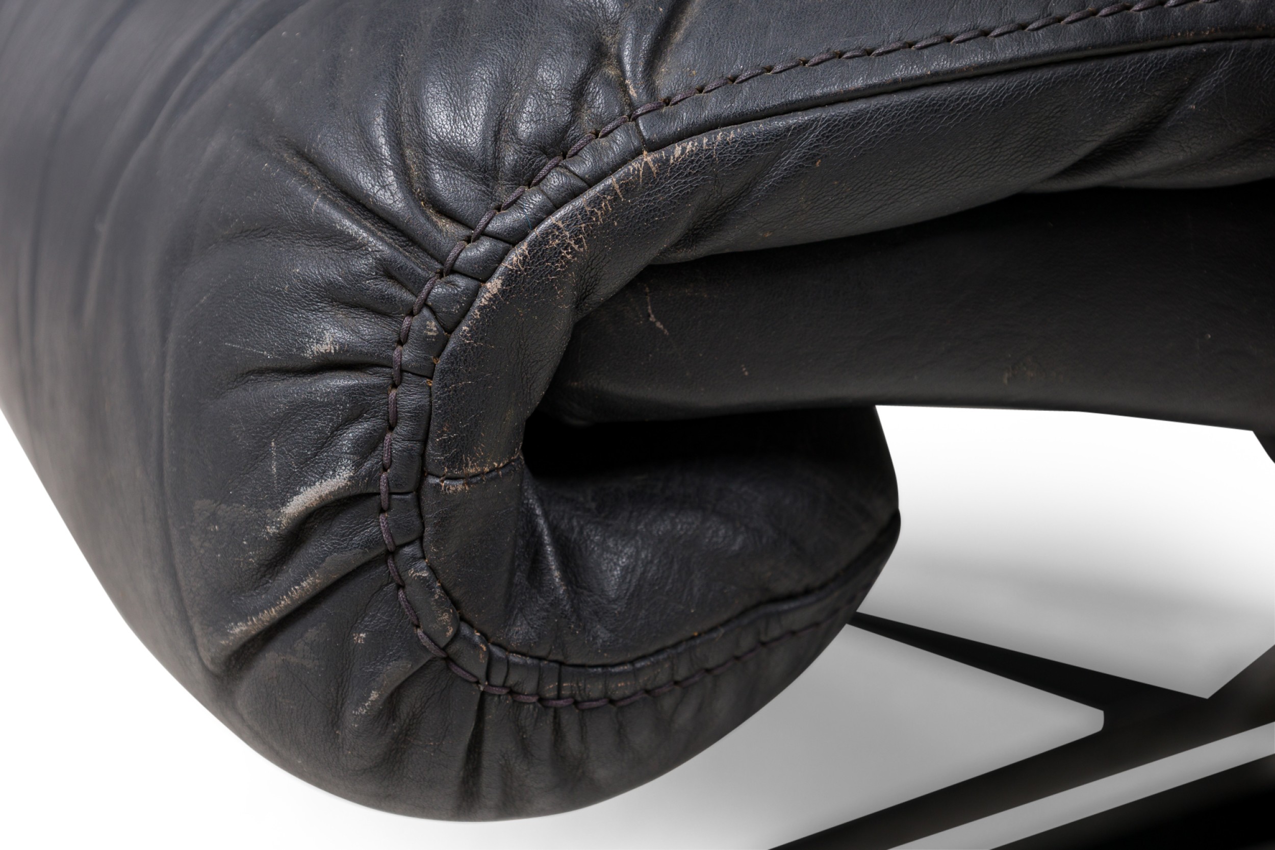 DeSede Mid-Century Swiss Metal & Black Leather Upholstered Swivel Chair