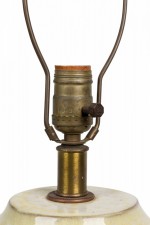 Style: Mid-Century Materials & Techniques: Brass, ceramic, metal, painted Category: Lighting Condition: 22.5" height with harp. Felt bottom worn. Electrics working. Ships without shade. Good; Wear consistent with age and use