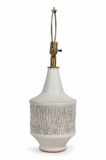 Design Technics Mid-Century American Ceramic Heavy Texture White Glazed Table Lamp