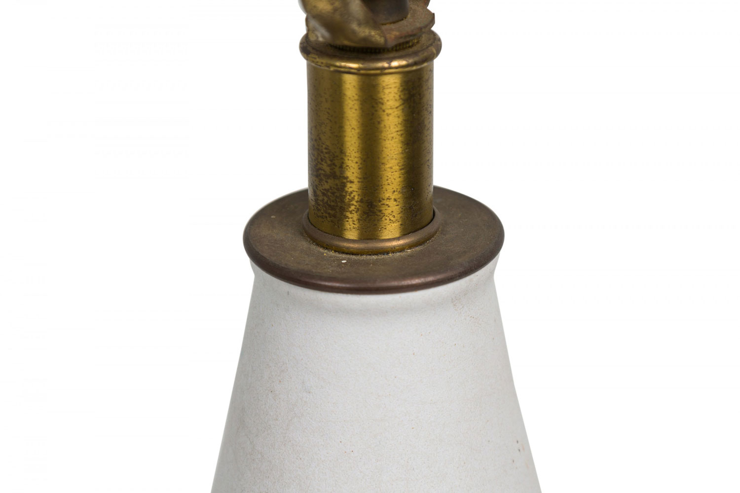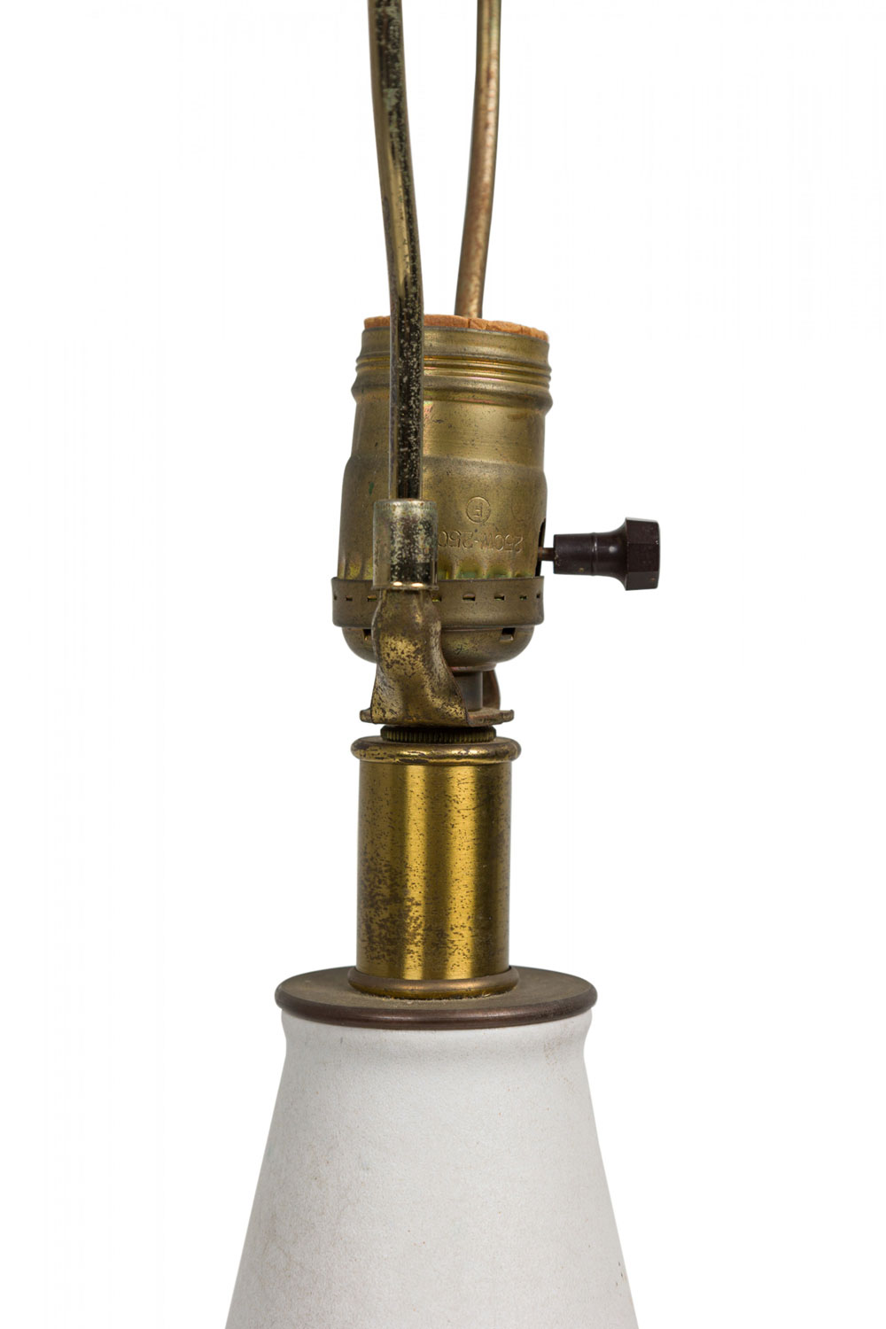 Style: Mid-Century Materials & Techniques: Brass, ceramic, metal Category: Lighting Condition: 25" height with harp, felt bottom a bit worn. Electrics working. Ships without shade. Good; Wear consistent with age and use